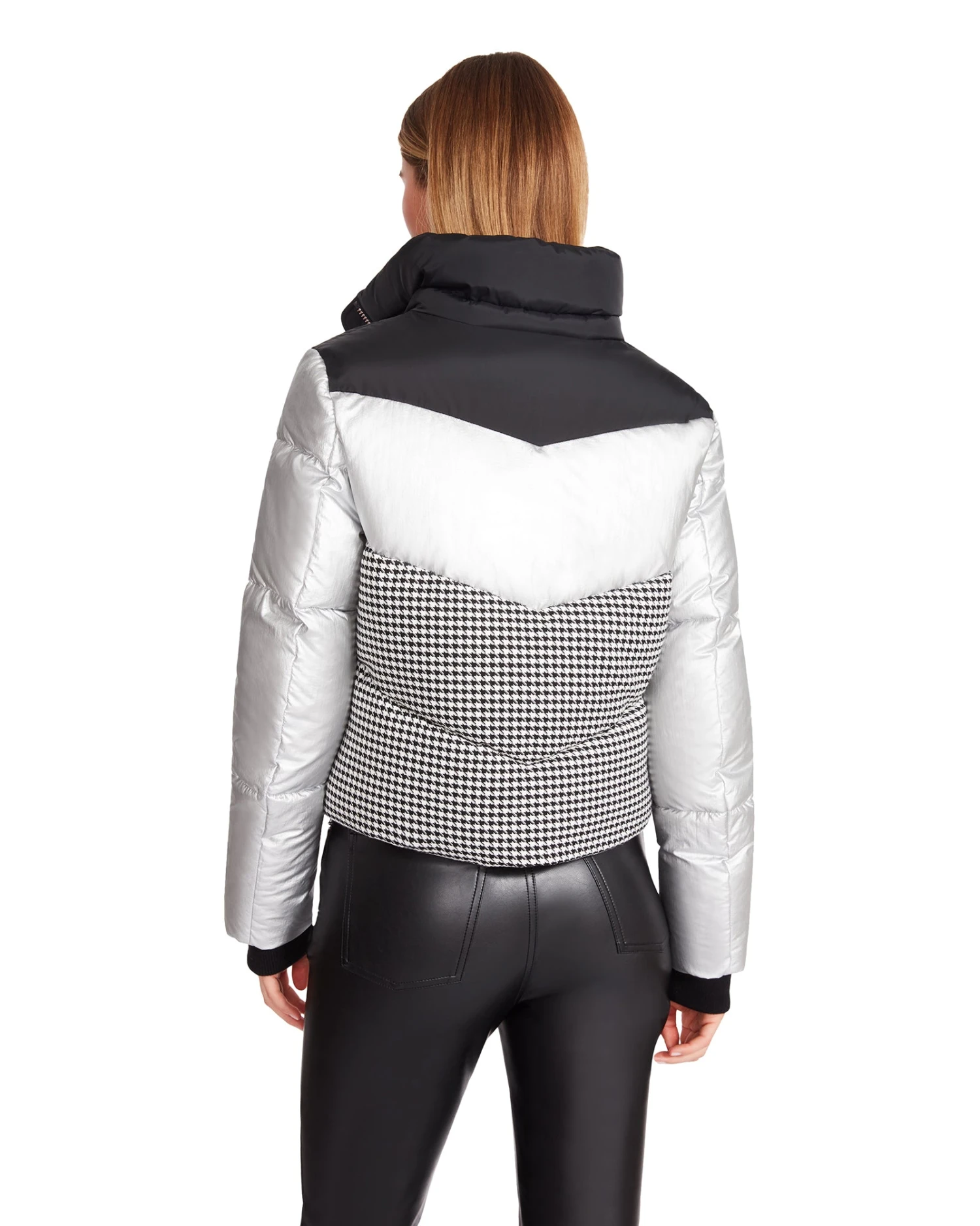 - Solid, metallic, and houndstooth color blocking