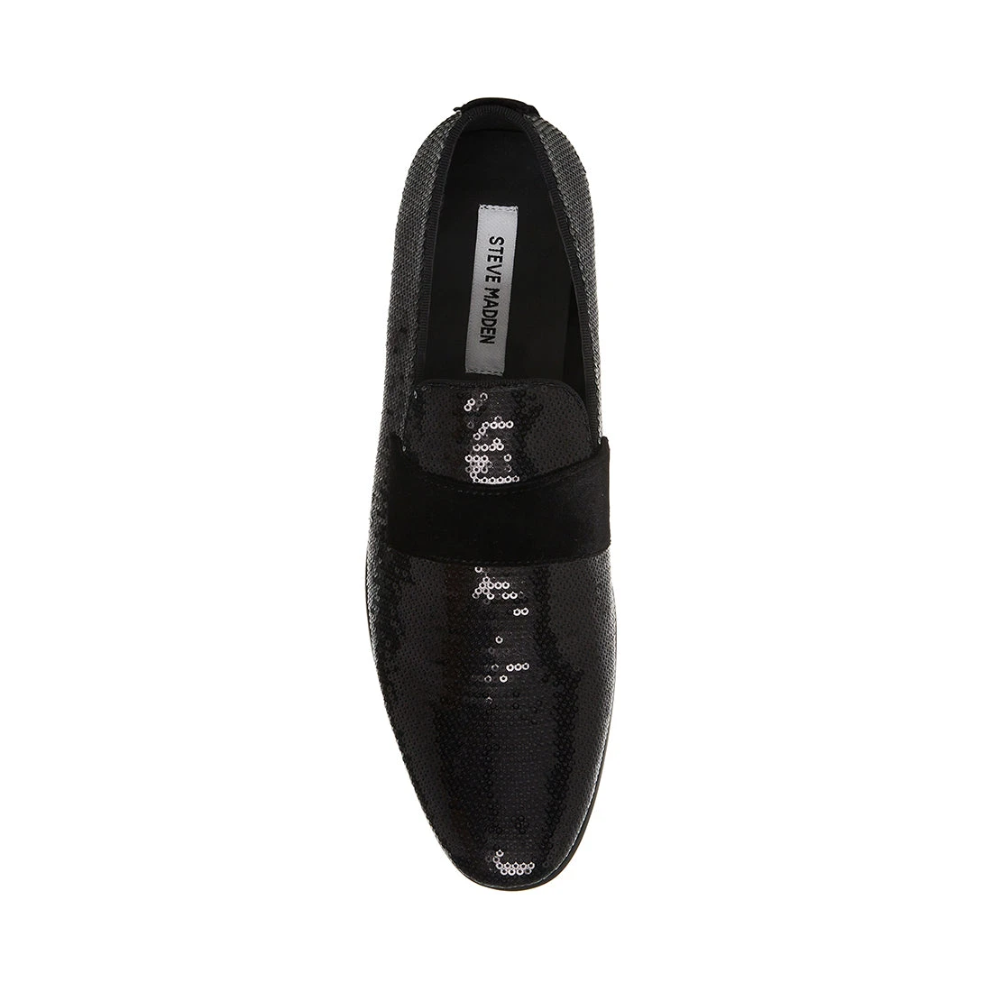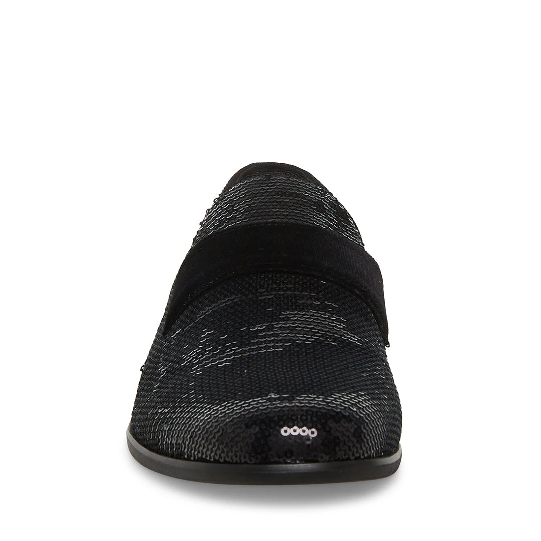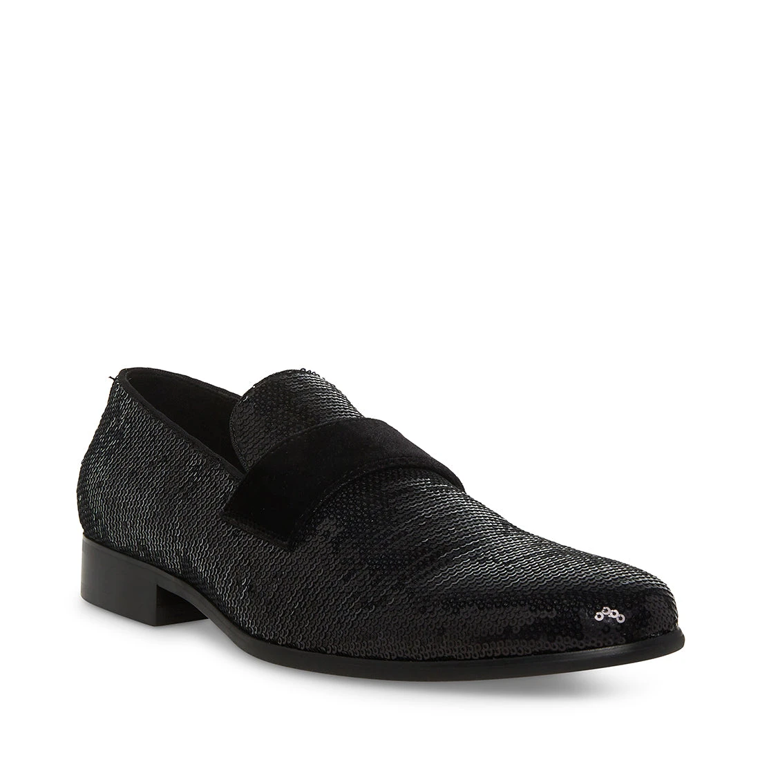 The ARLES loafer is a sleek, seamless design embellished with sparkling allover sequins and finished with a wide velvet strap across the top.