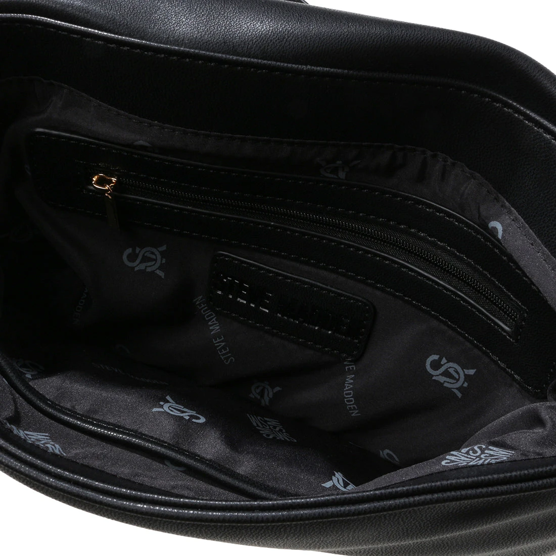 Quilted X-pattern stitching finished with an oversized pyramid stud at the center defines the design of the BLOUD crossbody bag.