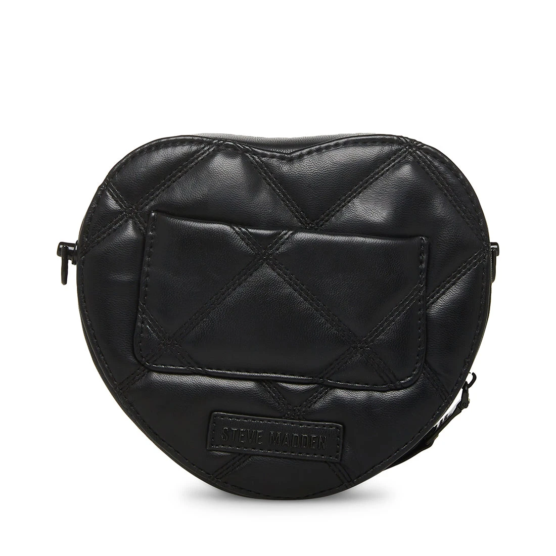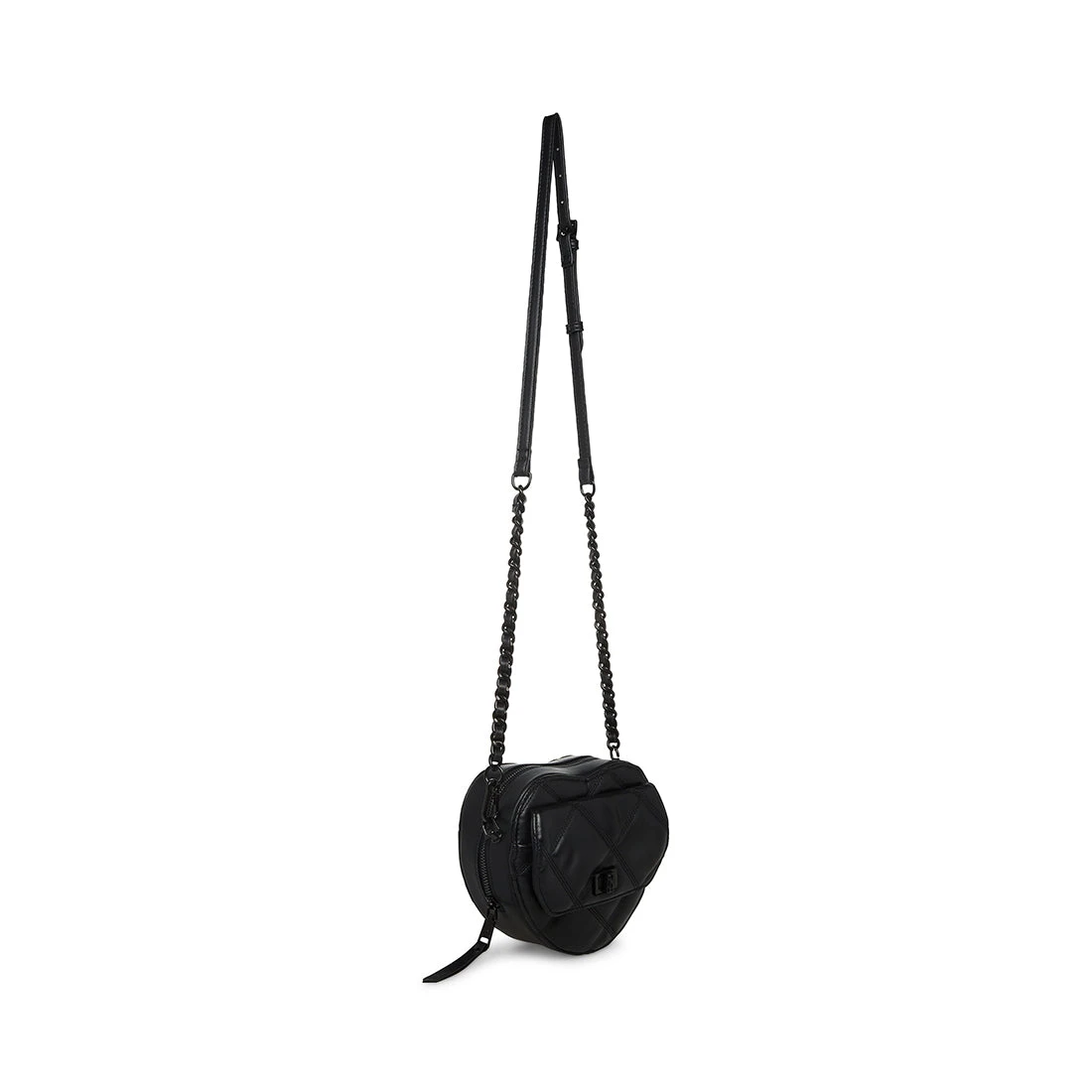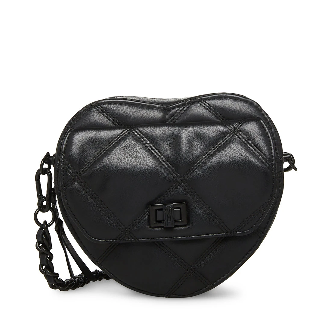 The BLOVER is a crossbody bag shaped like a heart with a matching chain strap and a quilted finish.