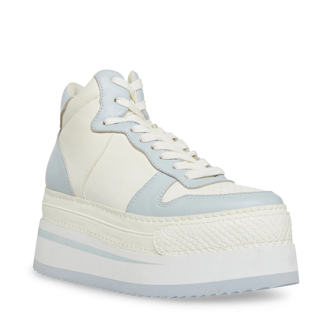 Matching contrast colors on the high top leather upper and the flatform sole give the BRODIEE sneaker its signature look.
