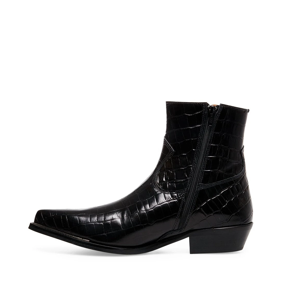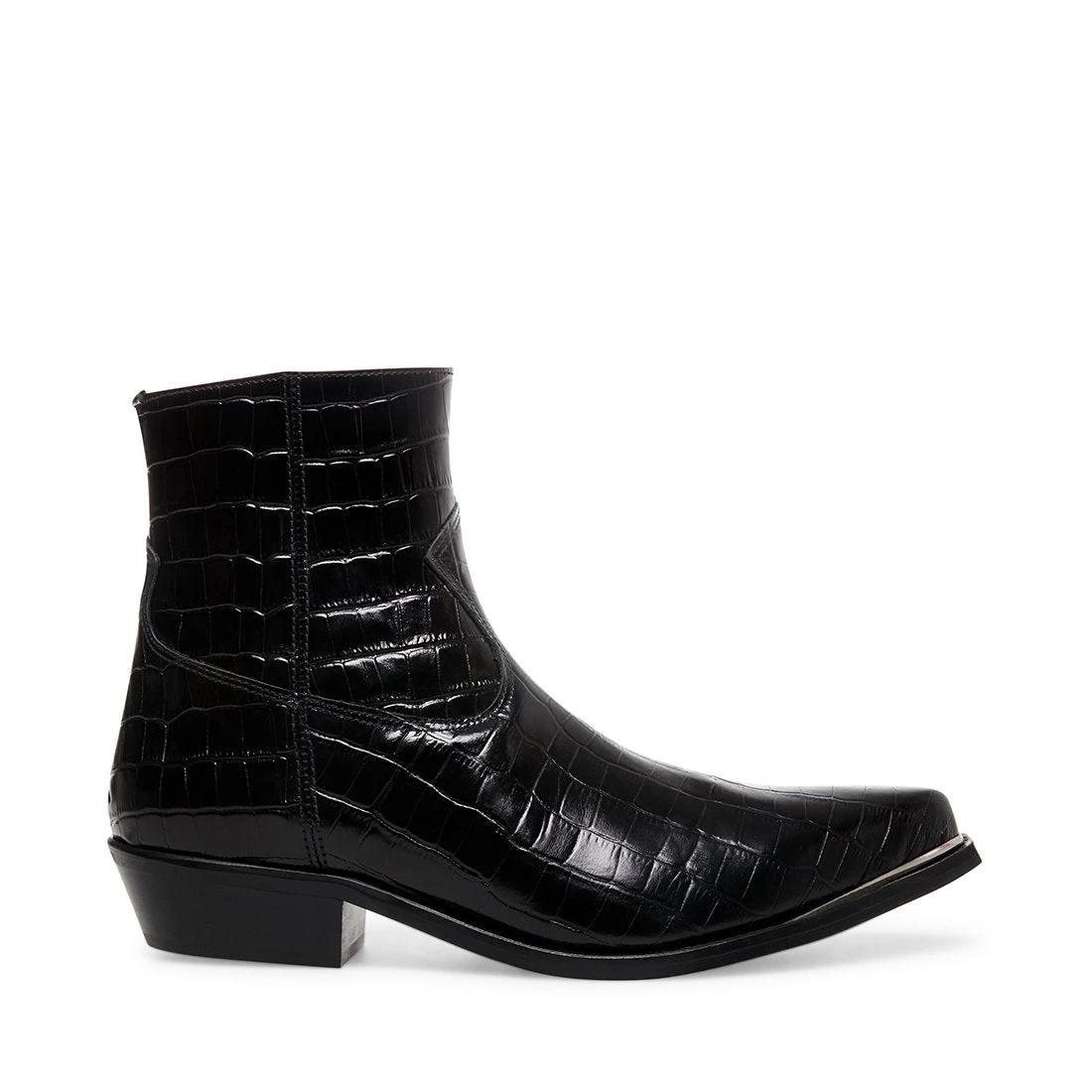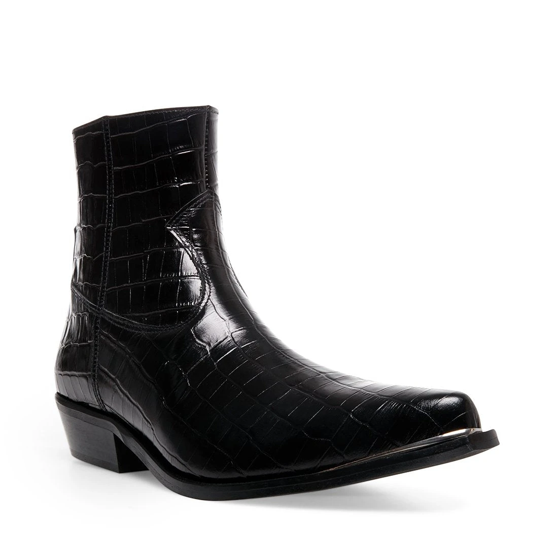Suede and faux croc uppers soften this cowboy boot, lending rich texture and fresh fashion-forward attitude. An abbreviated shaft ensures the style’s versatility while complementing its well-proportioned pointed toe.
