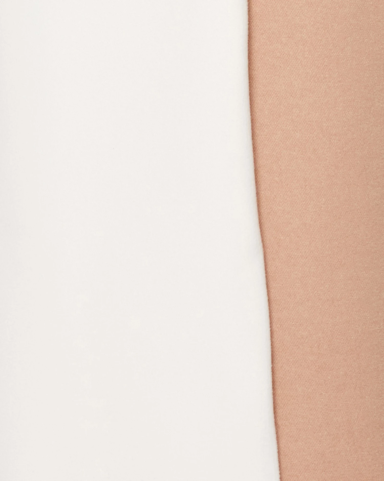 The CAROLINE coat makes a statement with a structured midi length split-color design that’s finished with a double breasted closure.