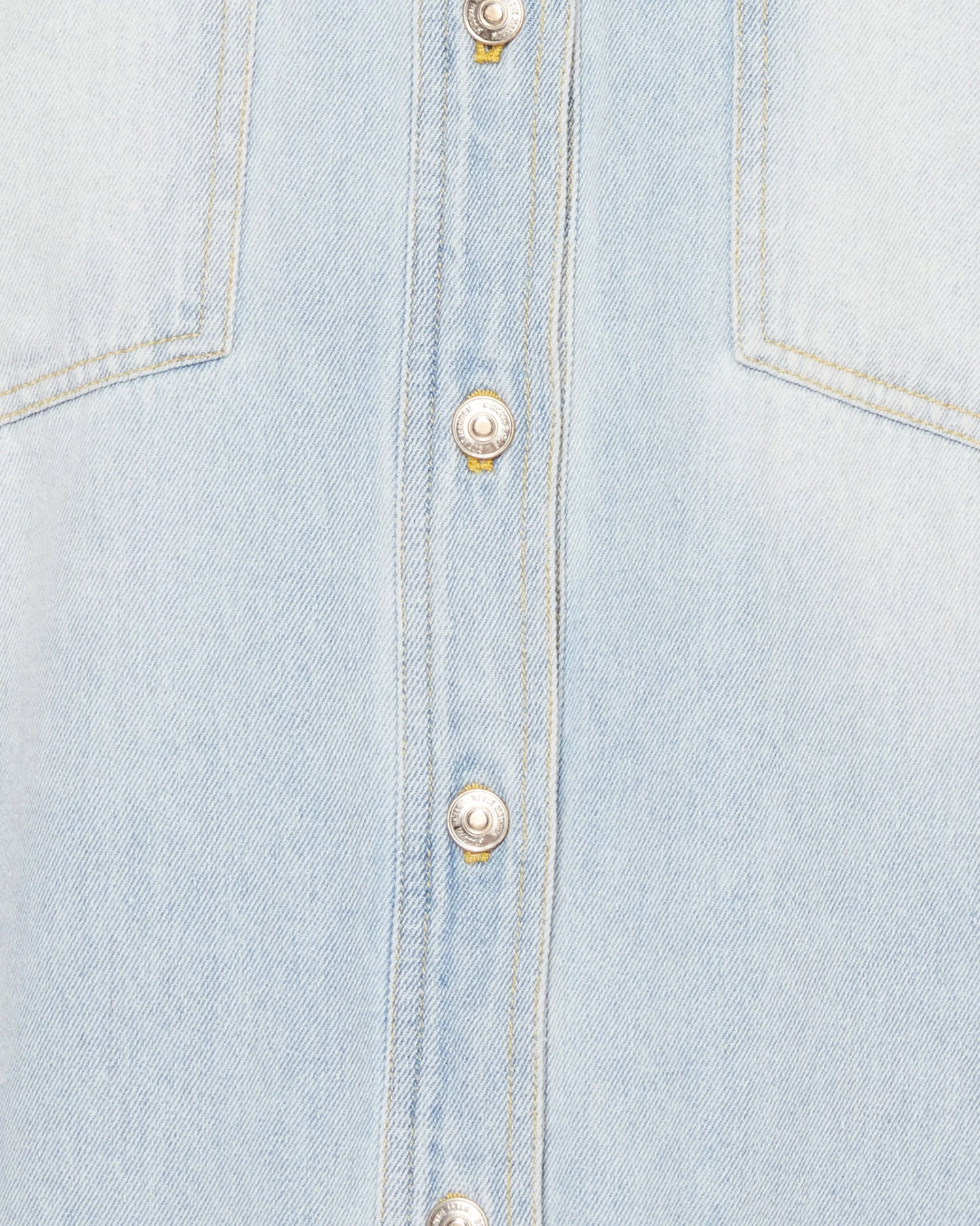 Made with soft cotton denim fabric, CASSIE is a collared button-front shirt that’s perfect for casual layering.