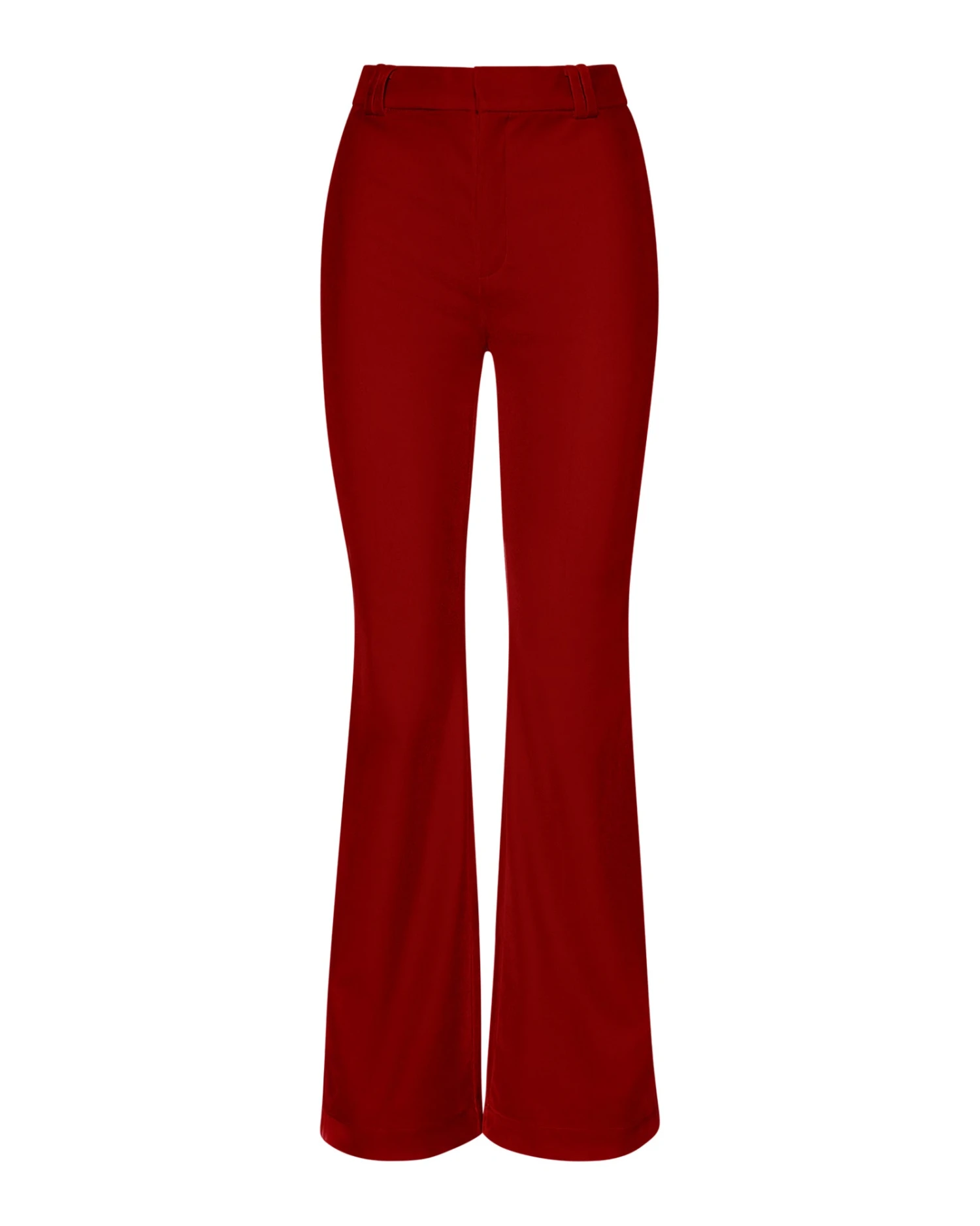 HARLOW is a flared pant with a tailored look in a soft, gleaming velvet fabric.
