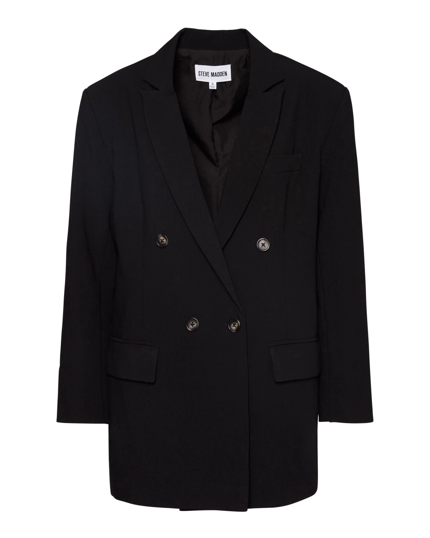 An oversized silhouette and tailored details define the look of the double breasted ISABELLA blazer.