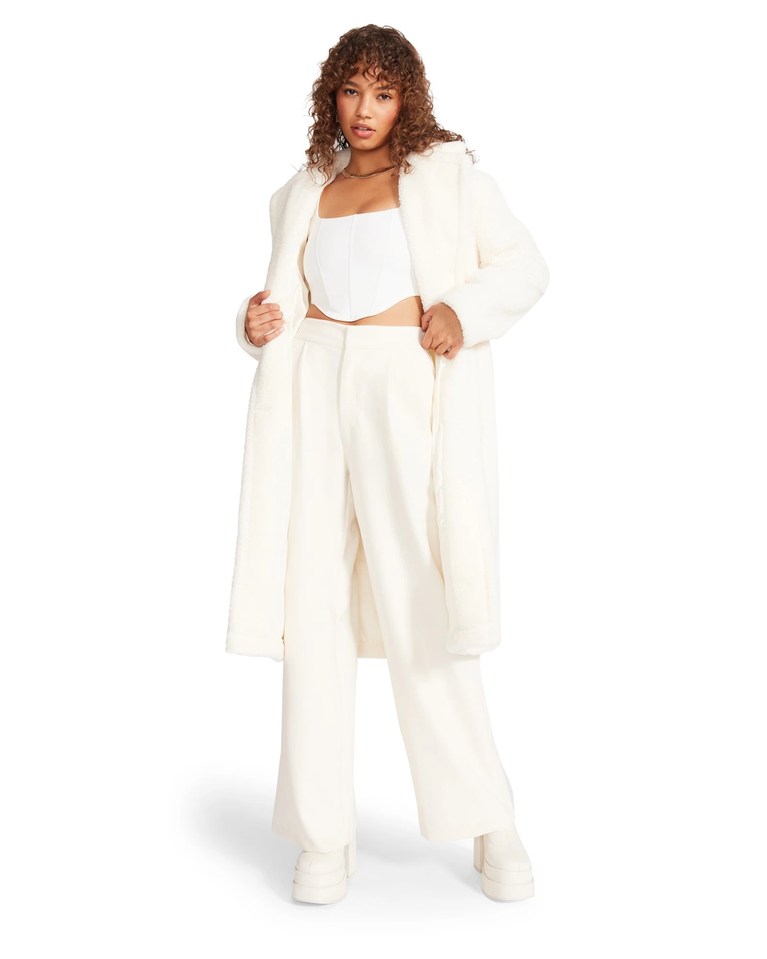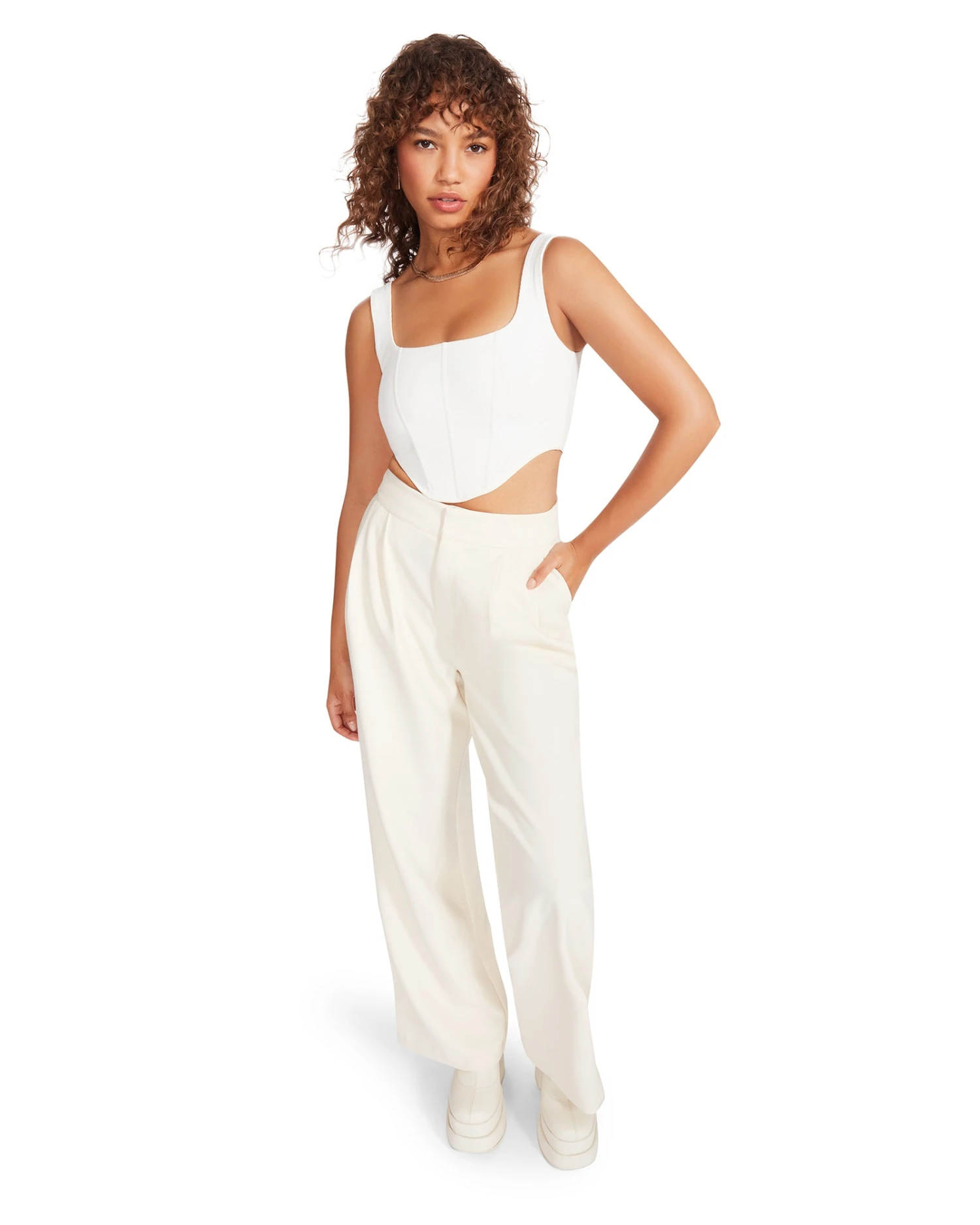 A high waistband and front pleating contribute to the overall tailored look of the ISABELLA wide leg pants.