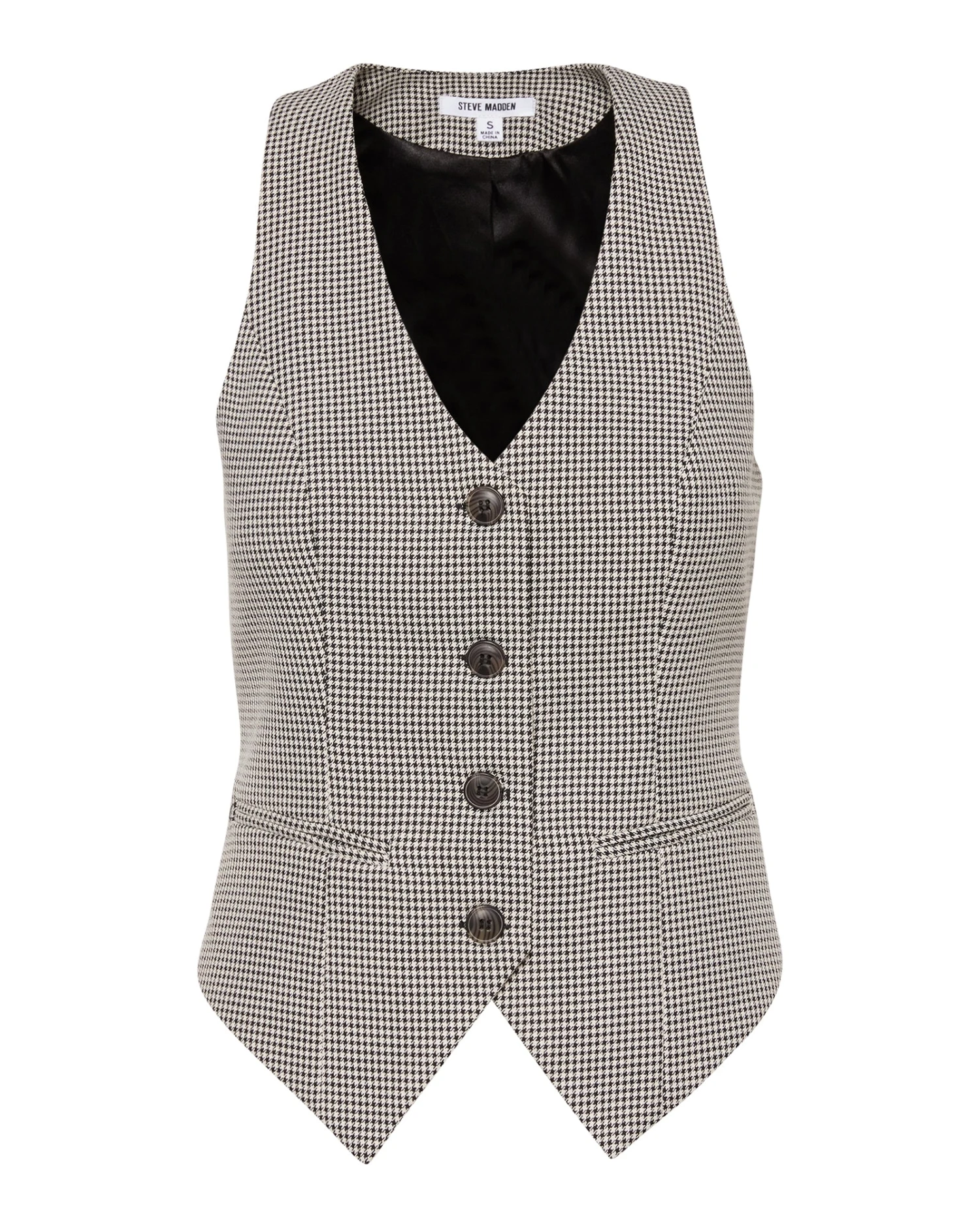 A gingham pattern and darting contribute to the overall tailored look of the ISABELLA vest.