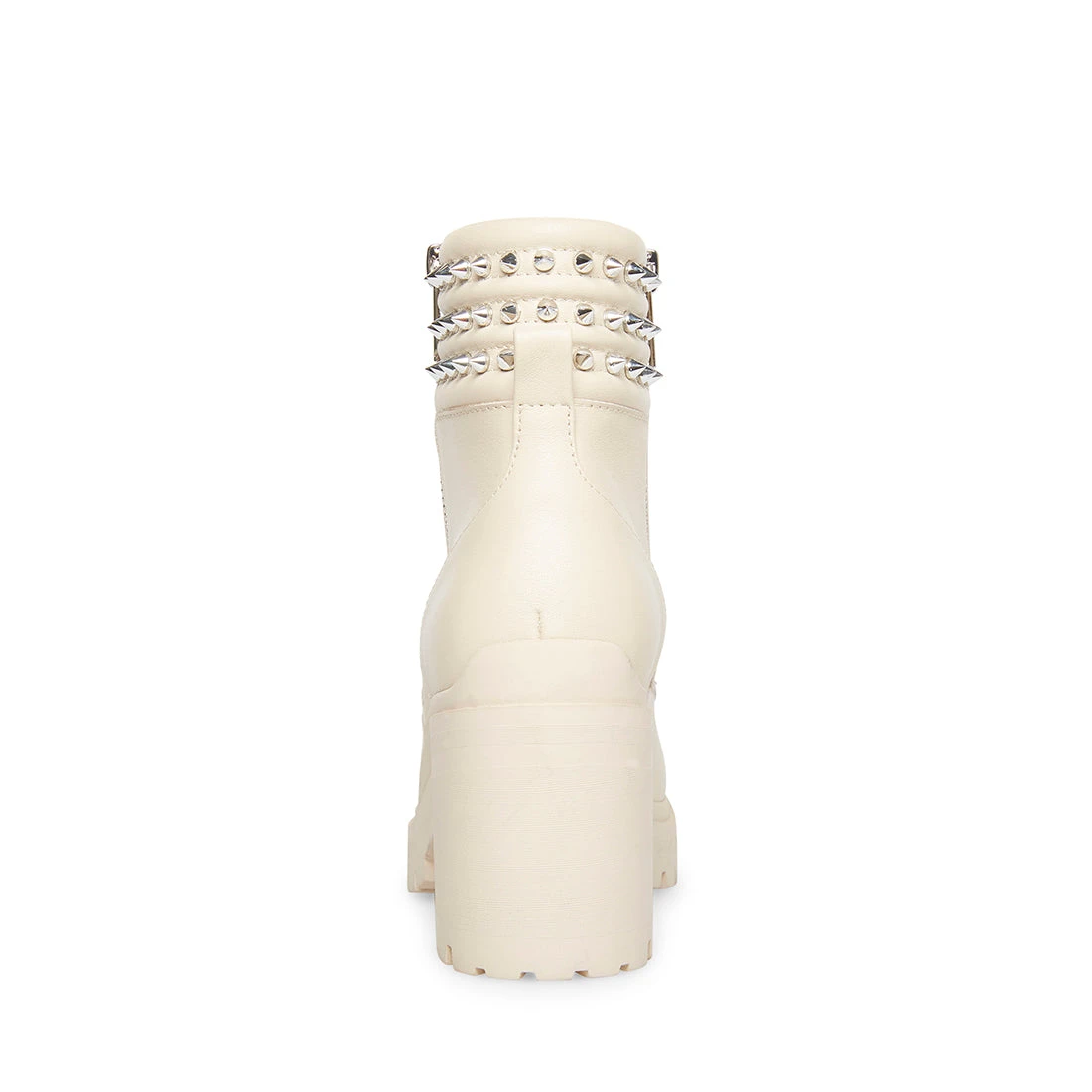 Tap into your bad girl side with JAYDIN. A tough combat boot is lifted on a block heel with a lug sole and features gleaming pyramid studs