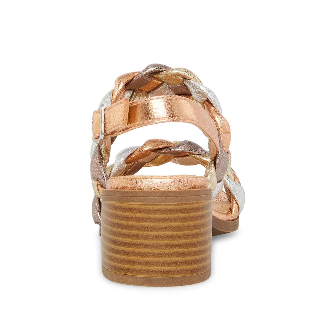 If she’s ready for a little heel, we highly suggest JKENLEYY! Fun braided metallic straps and a back buckle ensure easy wear and the right amount of shine!