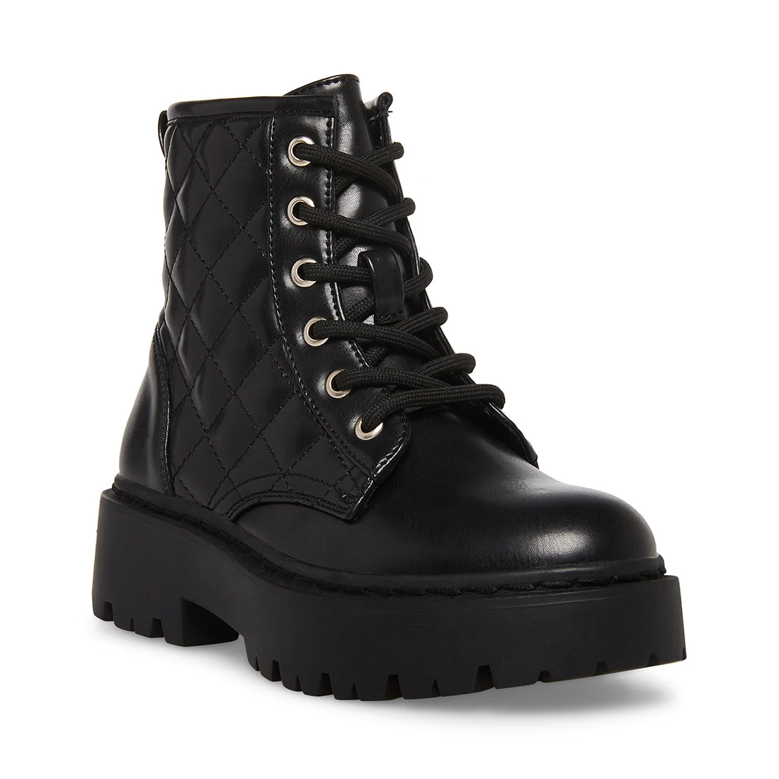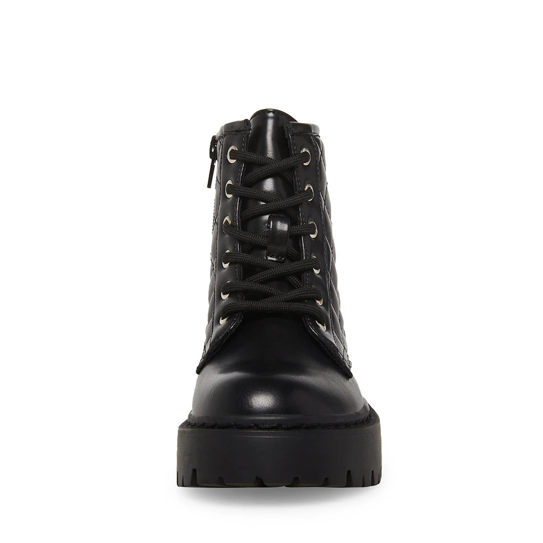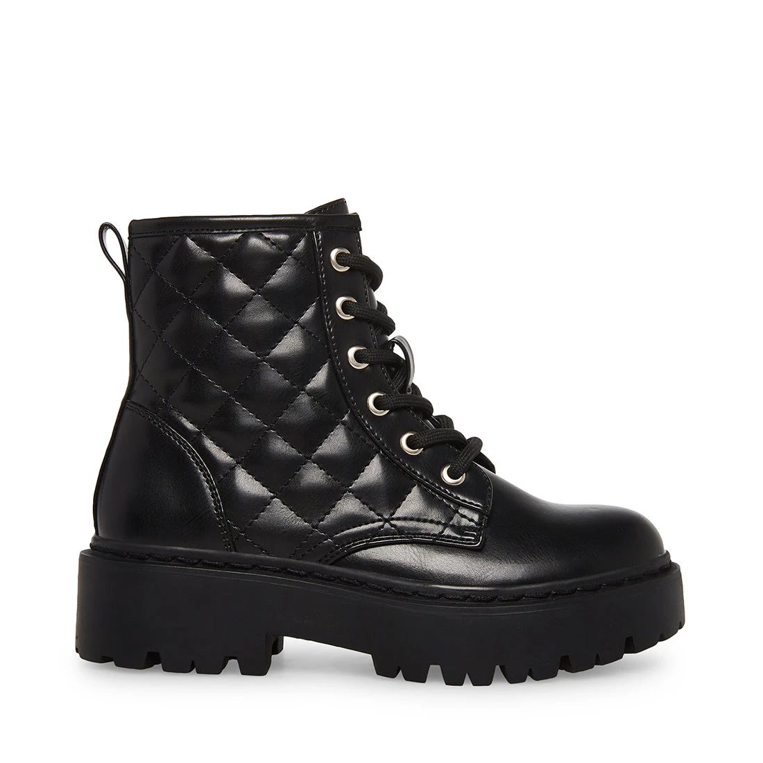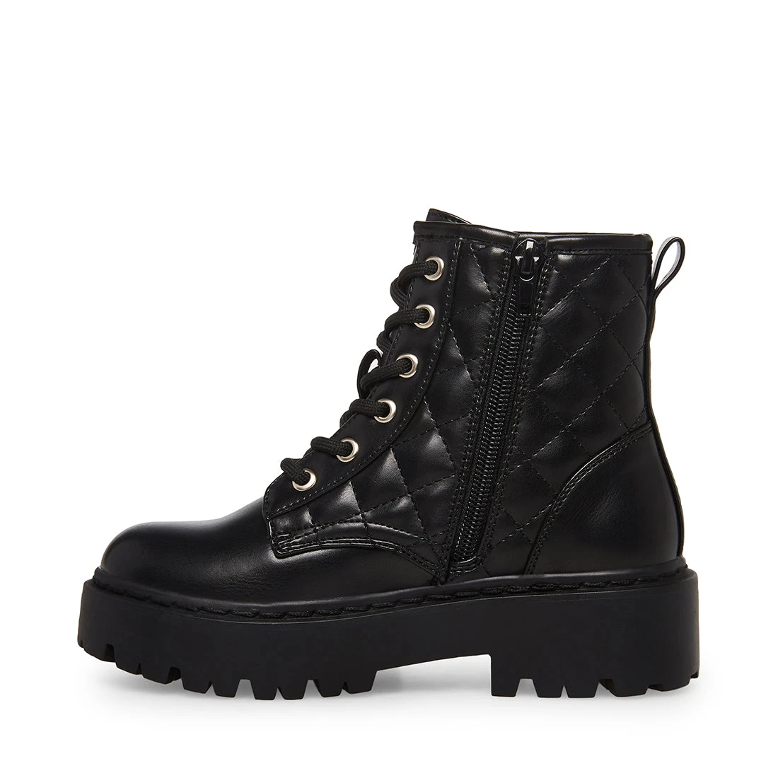 JROCKK is an ankle height combat boot with a heavy treaded sole and an easy zipper closure.