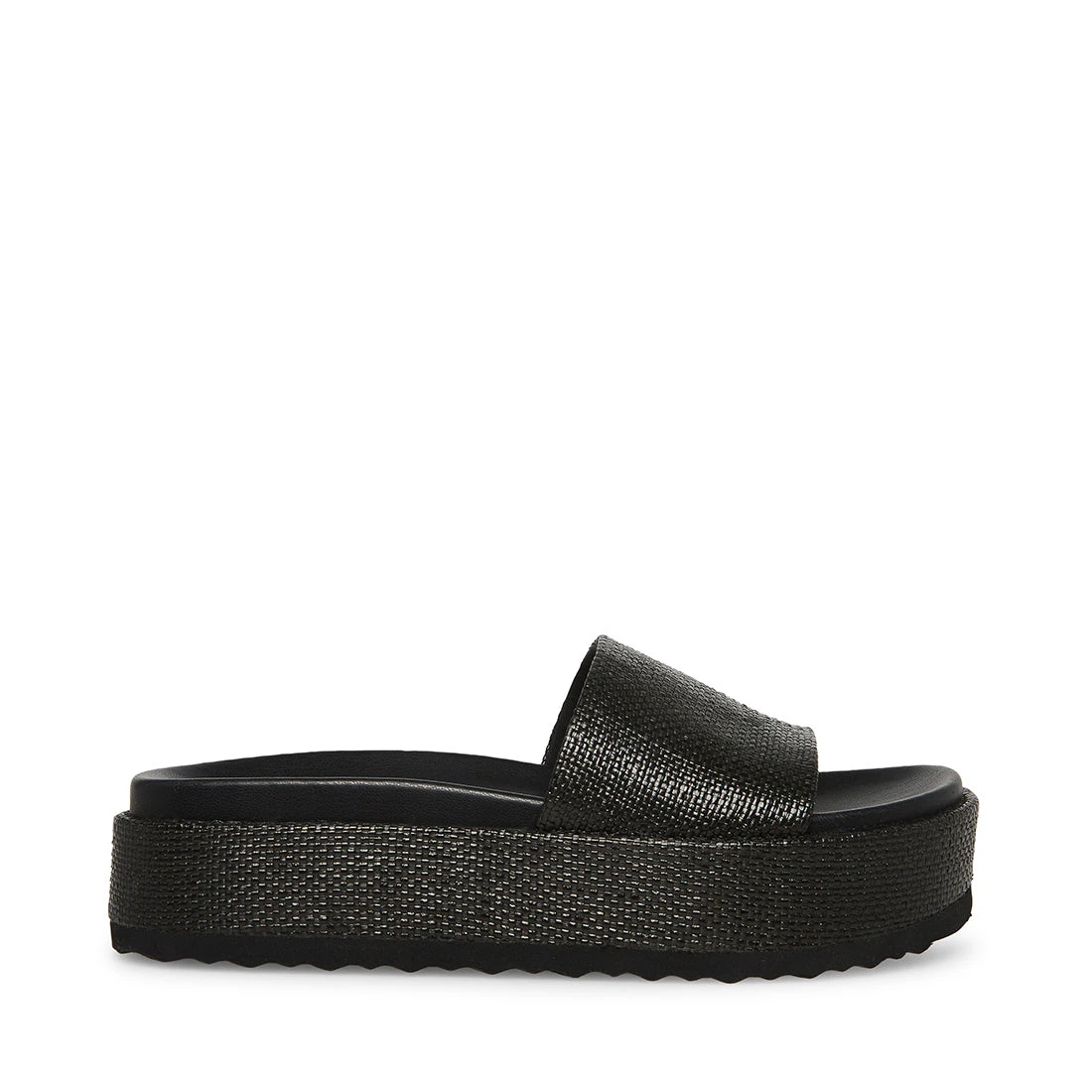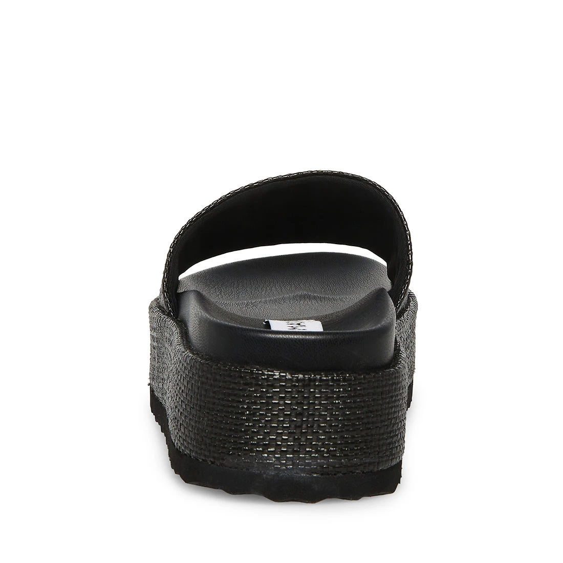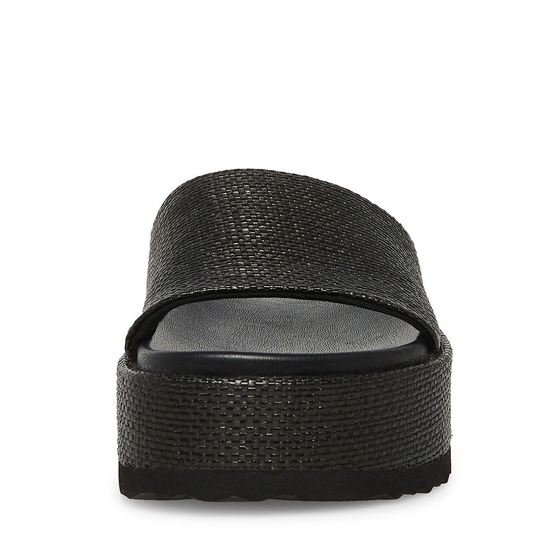 The KASPER slide sandal features a strap and flatform in a tweed-texture fabric with a molded footbed.