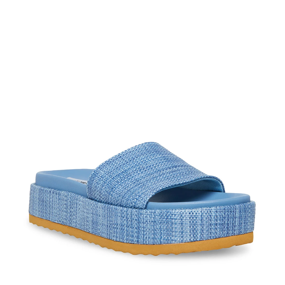 The KASPER slide sandal features a strap and flatform in a tweed-texture fabric with a molded footbed.