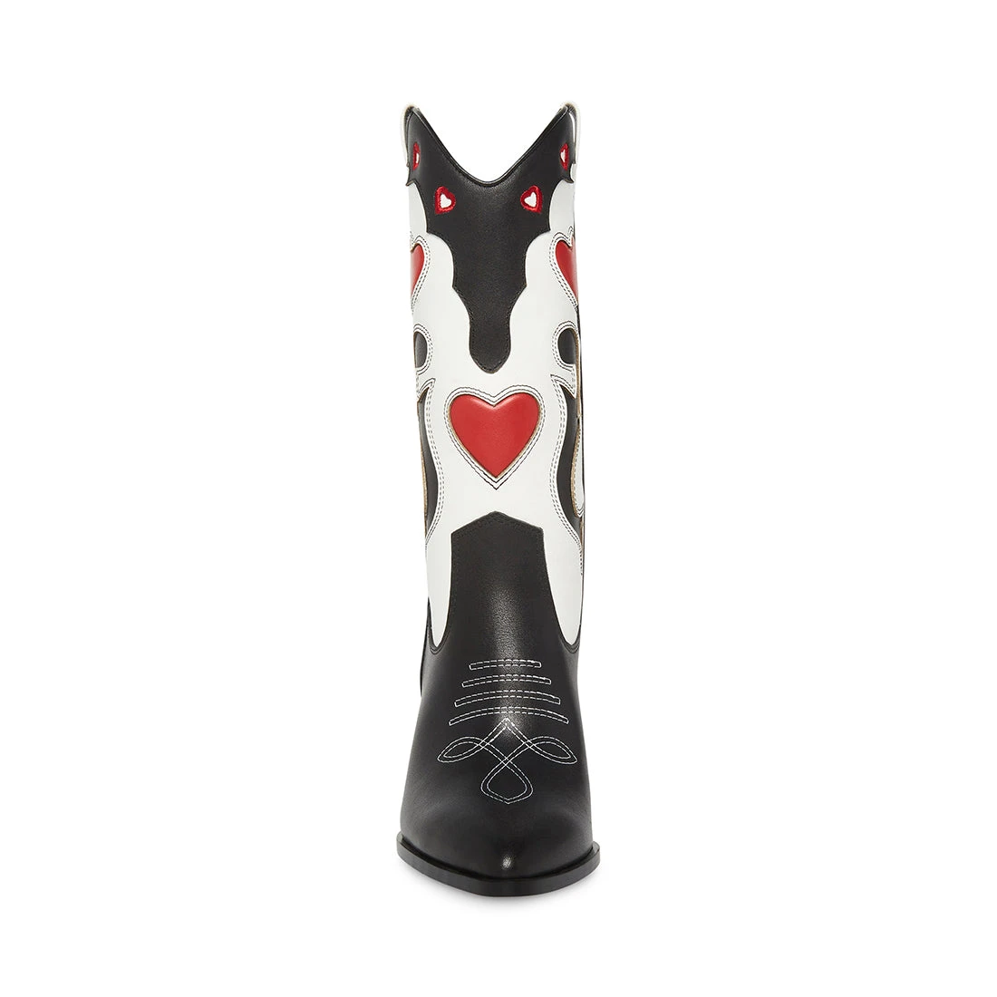 The LOVESTRUCK boot takes the classic high heel cowboy boot silhouette and adds intricate panel cuts and stitching for a western-inspired design with a heart motif.