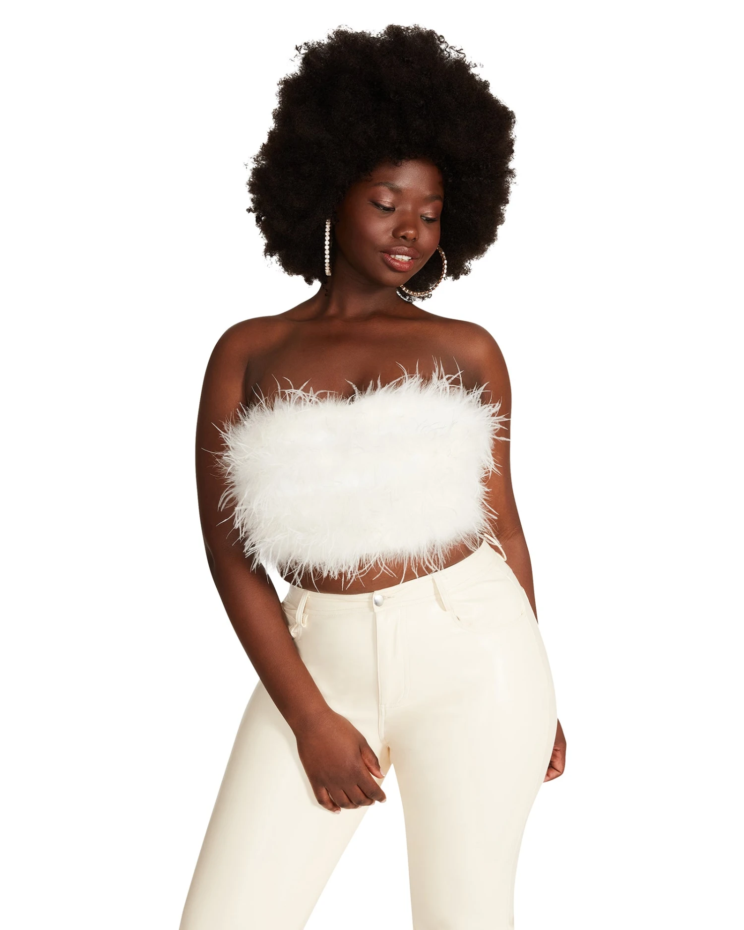 A voluminous puff of soft marabou feathers covers the front of the NESSA bandeau top. Internal boning provides structure and support.