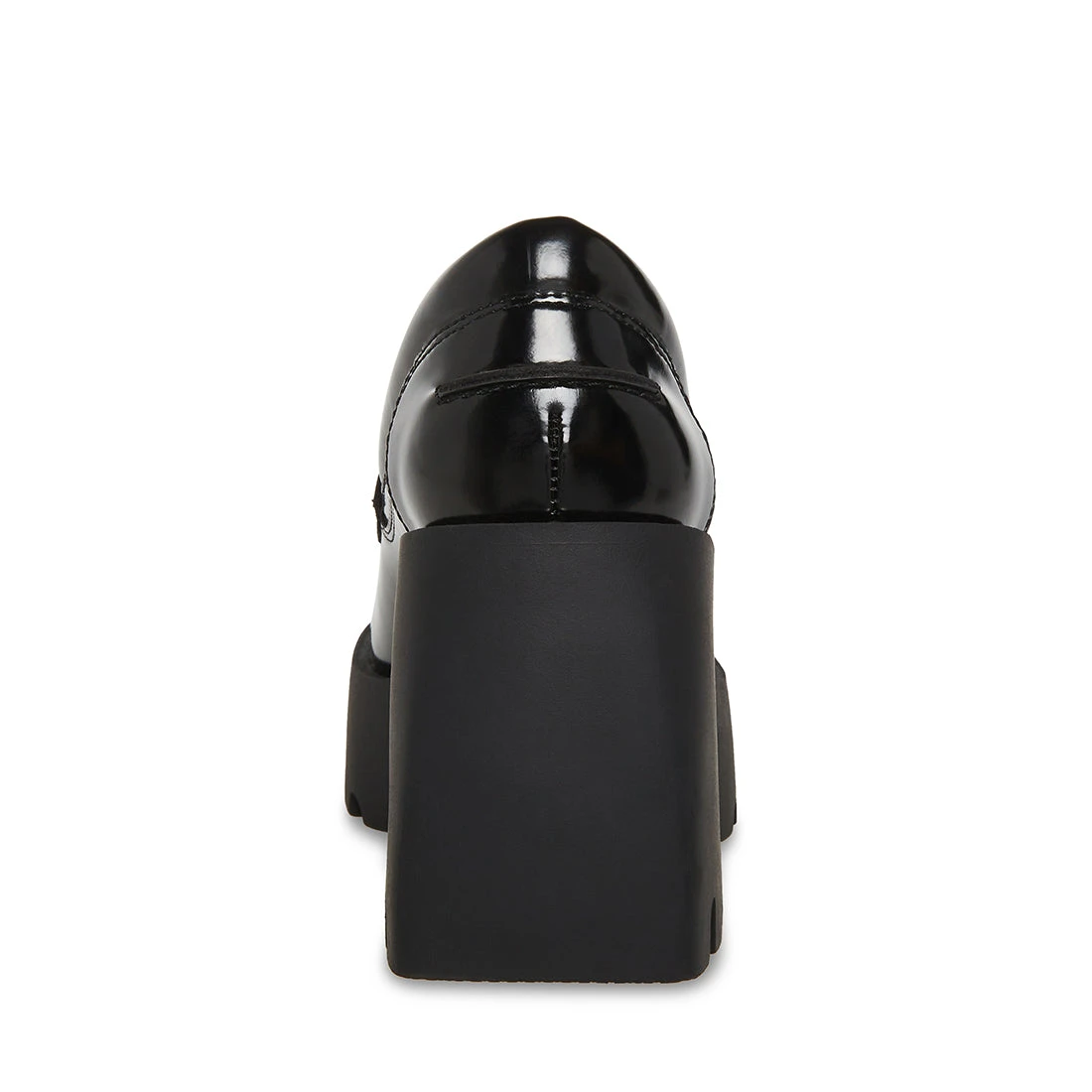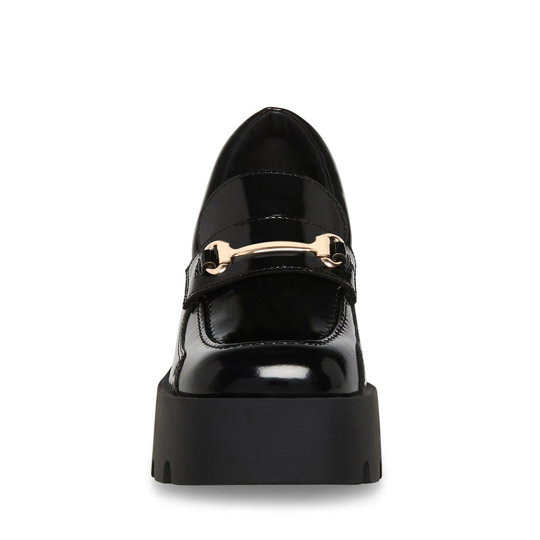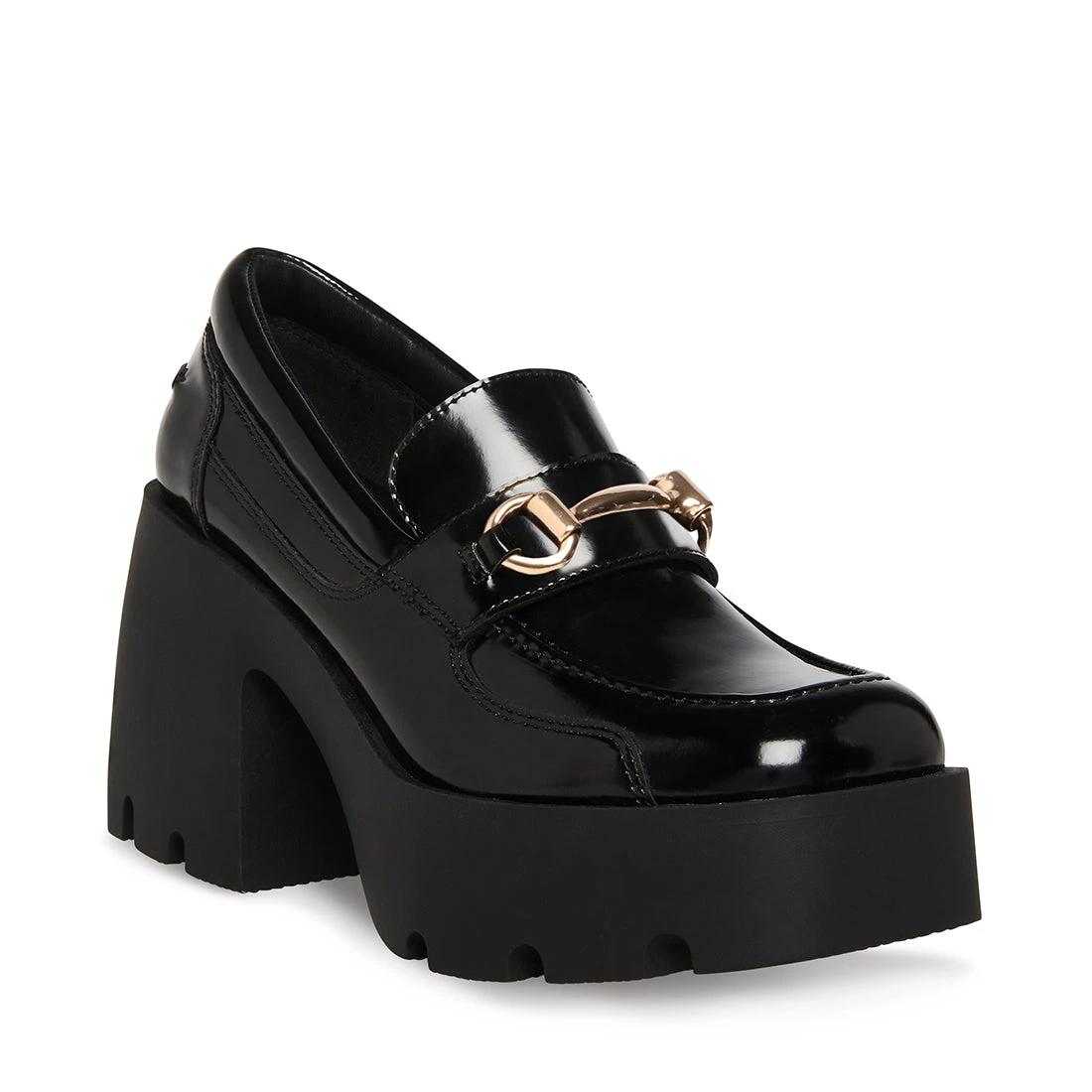 The PENELOPE elevates the traditional bit loafer with a chunky lug sole platform heel and a patent finish.