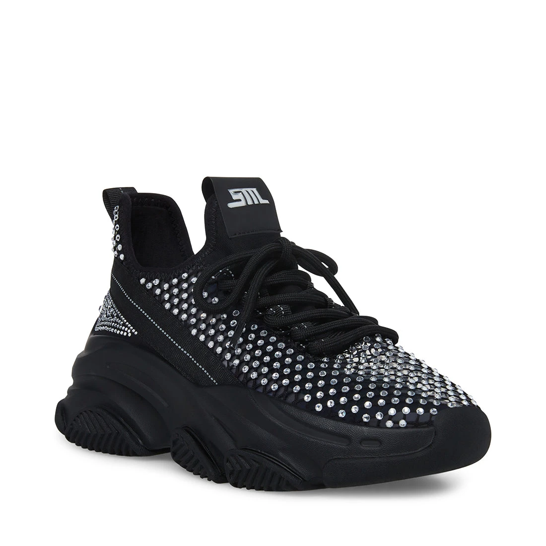 - Rhinestone embellished mesh upper
