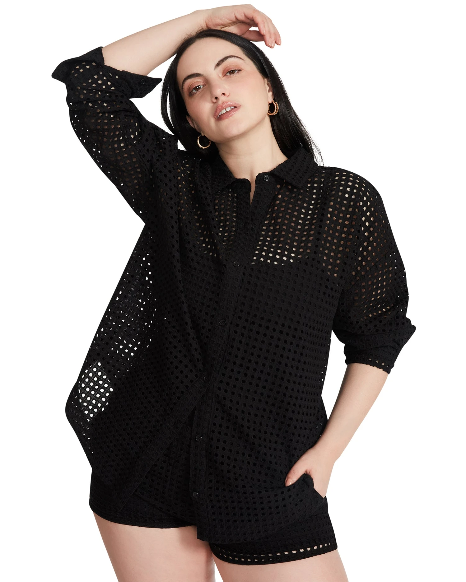 The cotton poplin POPPY top is a collared button-front shirt designed for easy layering with a loose and draped fit.
