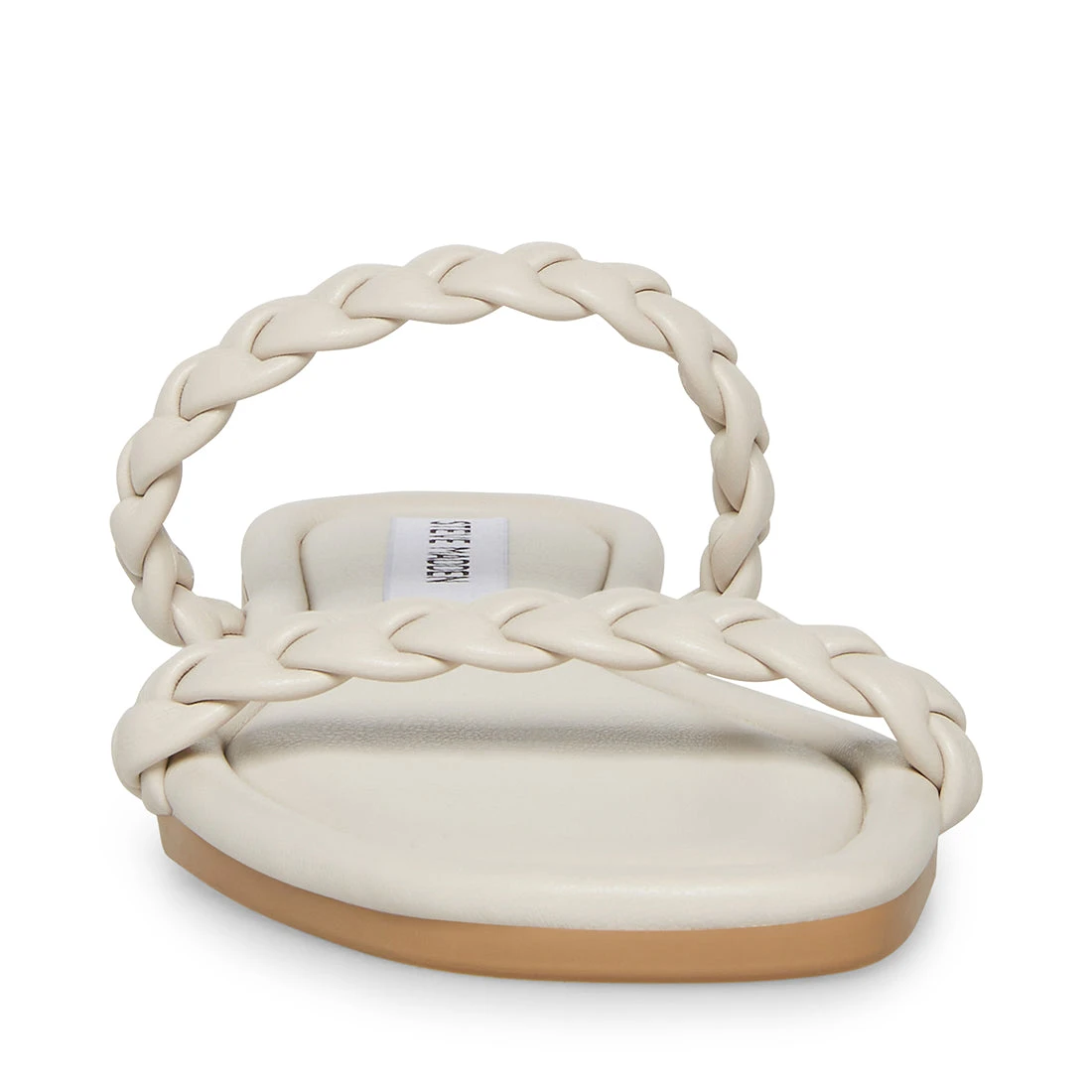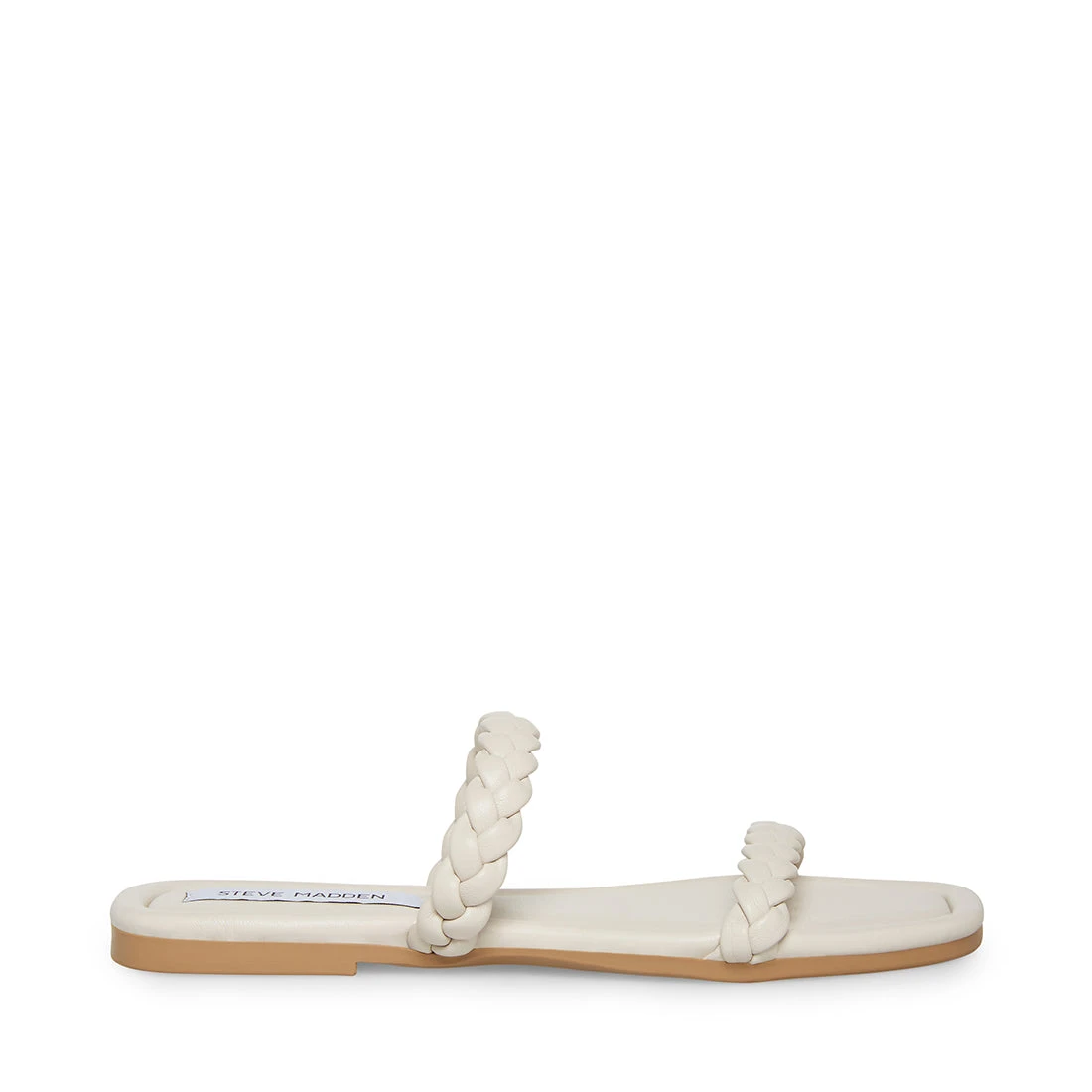 RAYAN is slide sandal design with 2 braided vegan leather straps secured to an easy flat sole.