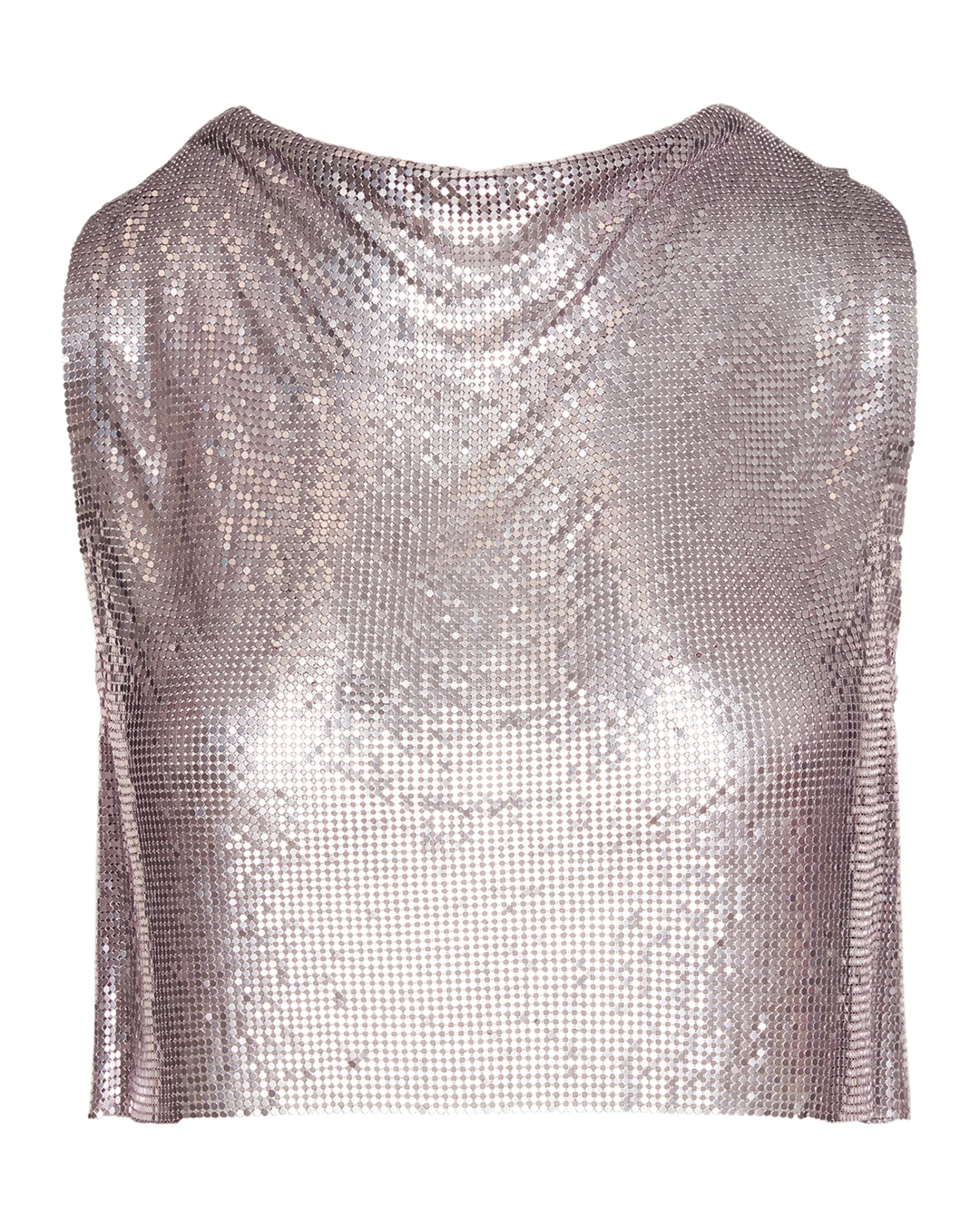 A fully metal mesh construction gives the open-back SALINA top shimmering texture and movement.