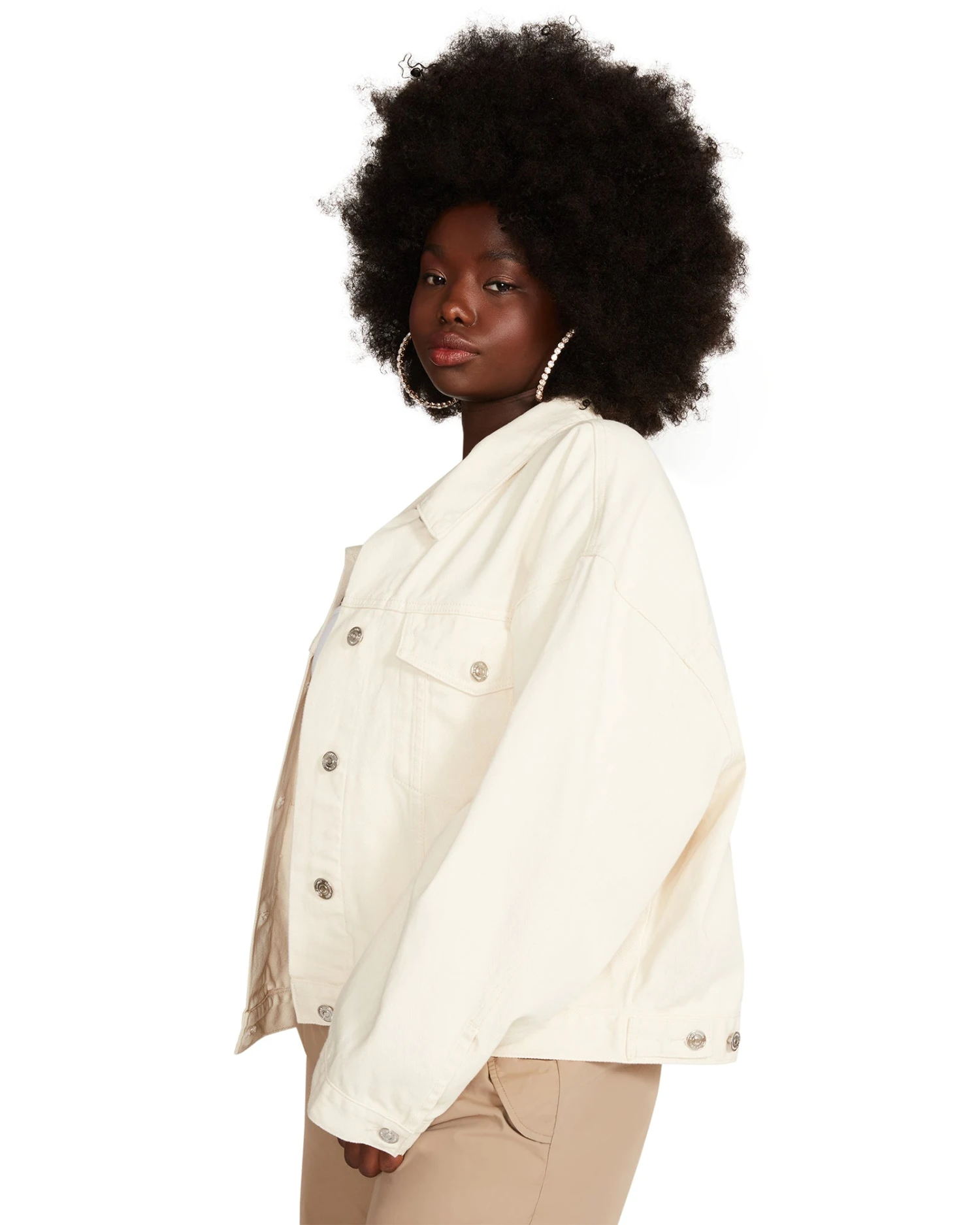 The SIENNA denim jacket gives movement and a touch of industrial edge to this relaxed look.
