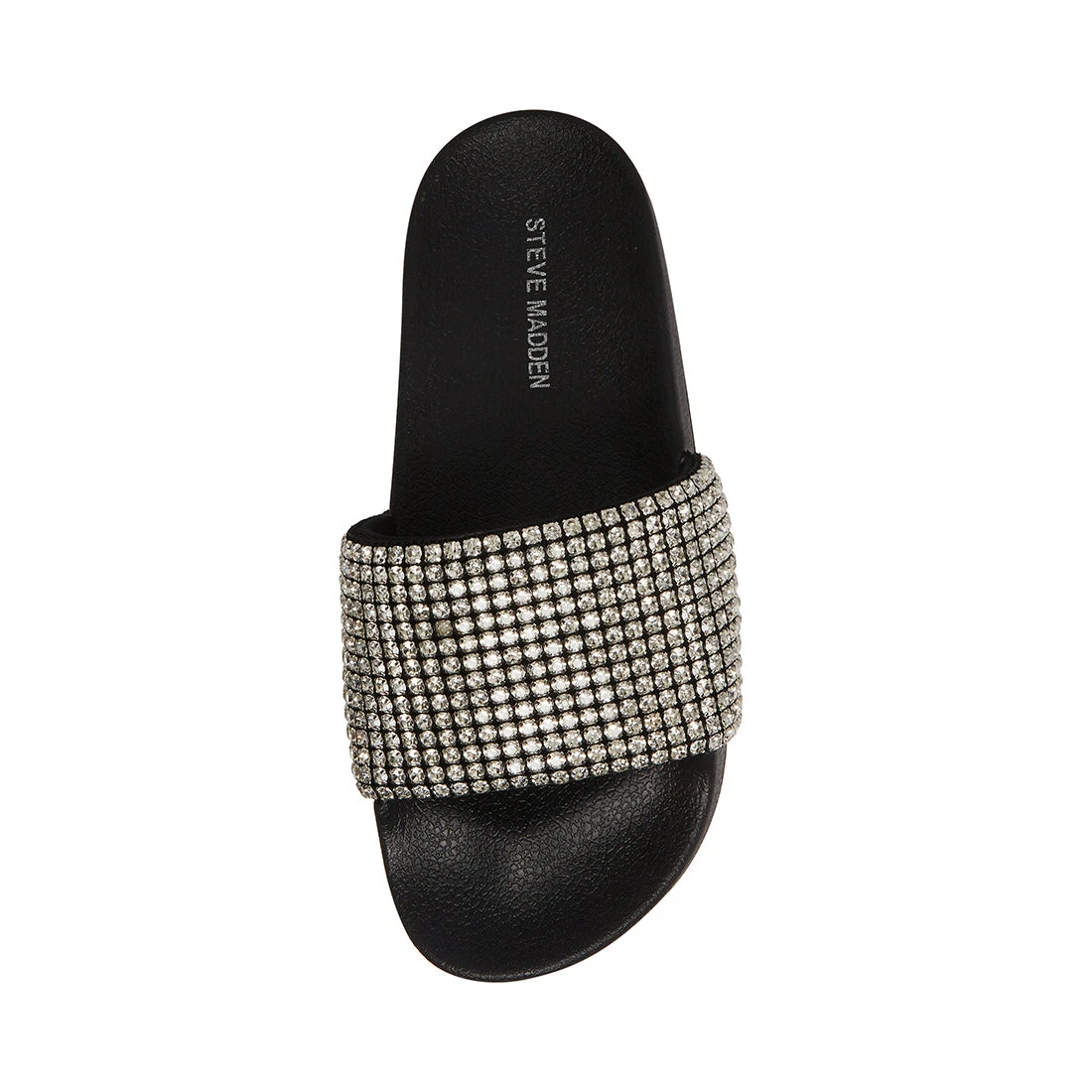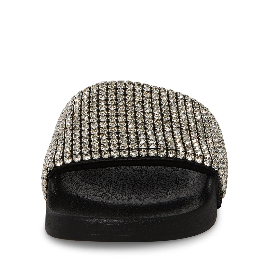 A cushioned slide is a quintessential summer essential. SIGN is a molded footbed style with bold rhinestone embellishments that put a bit of glam into your everyday.