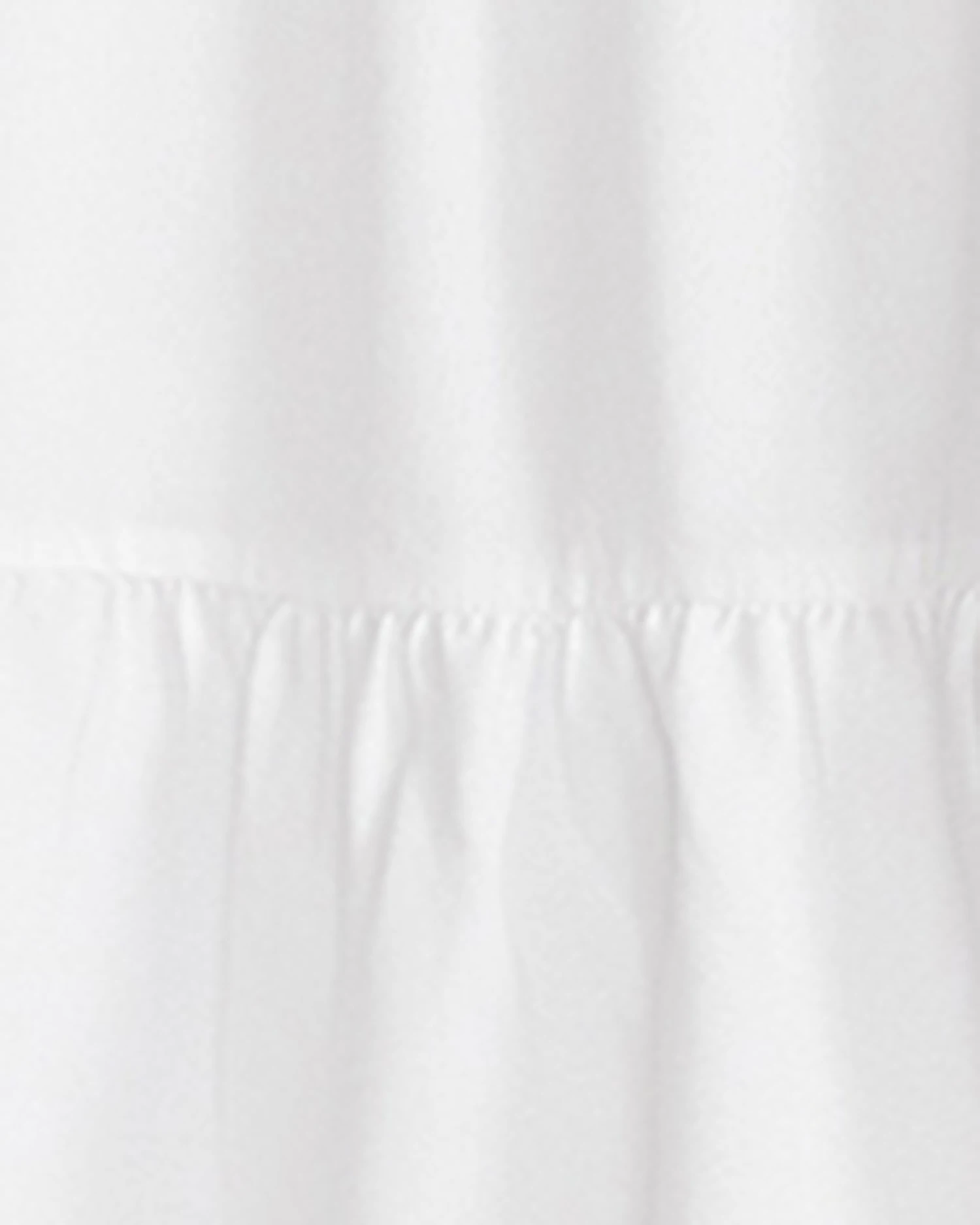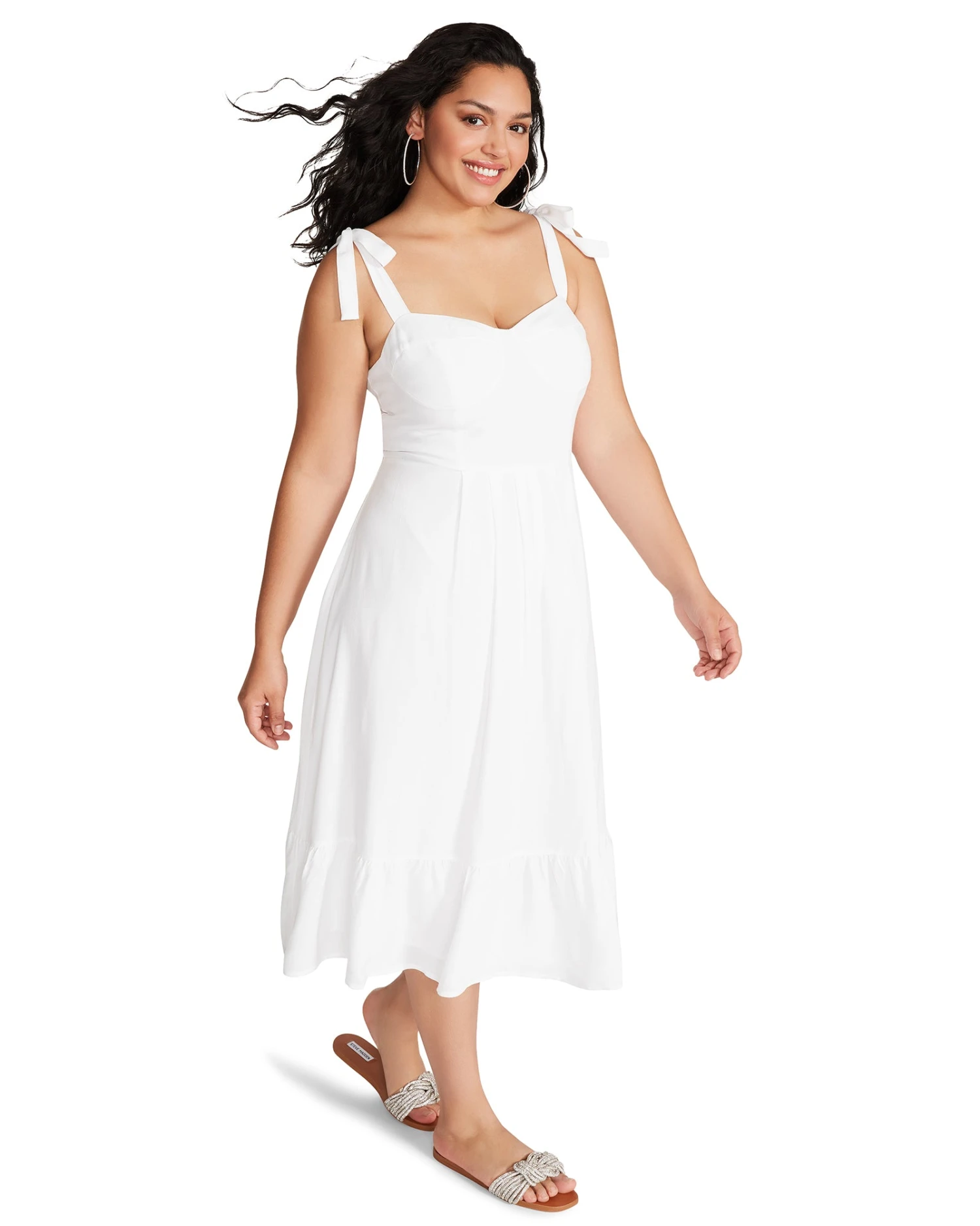 Tie straps, a ruffle hem, and a smocked back give the SOPHIA-ROSE dress classic lines and a comfortable, forgiving fit.