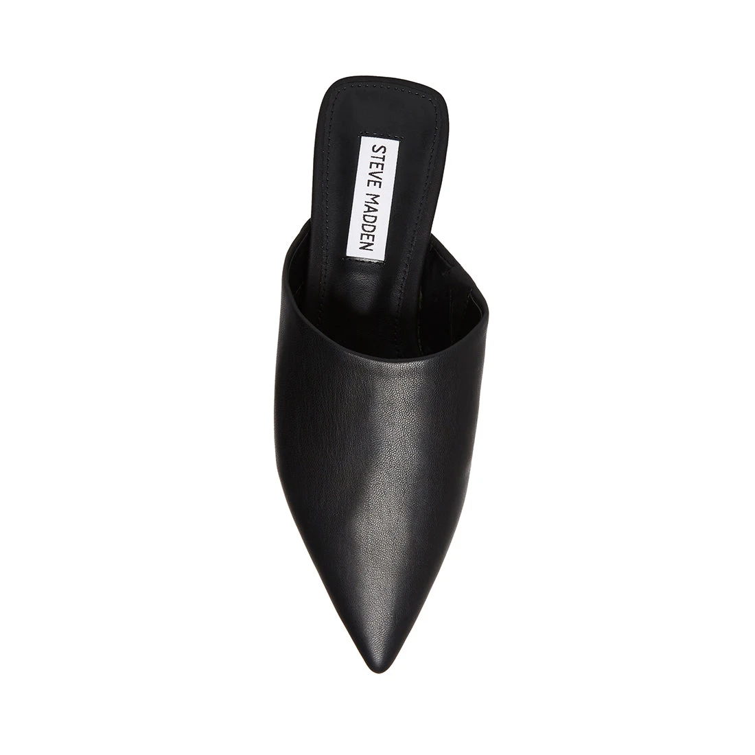 Although super-simple, this new mule makes a sophisticated statement with a long pointed toe, barely-there heel and close-fitting upper that holds the style in place.