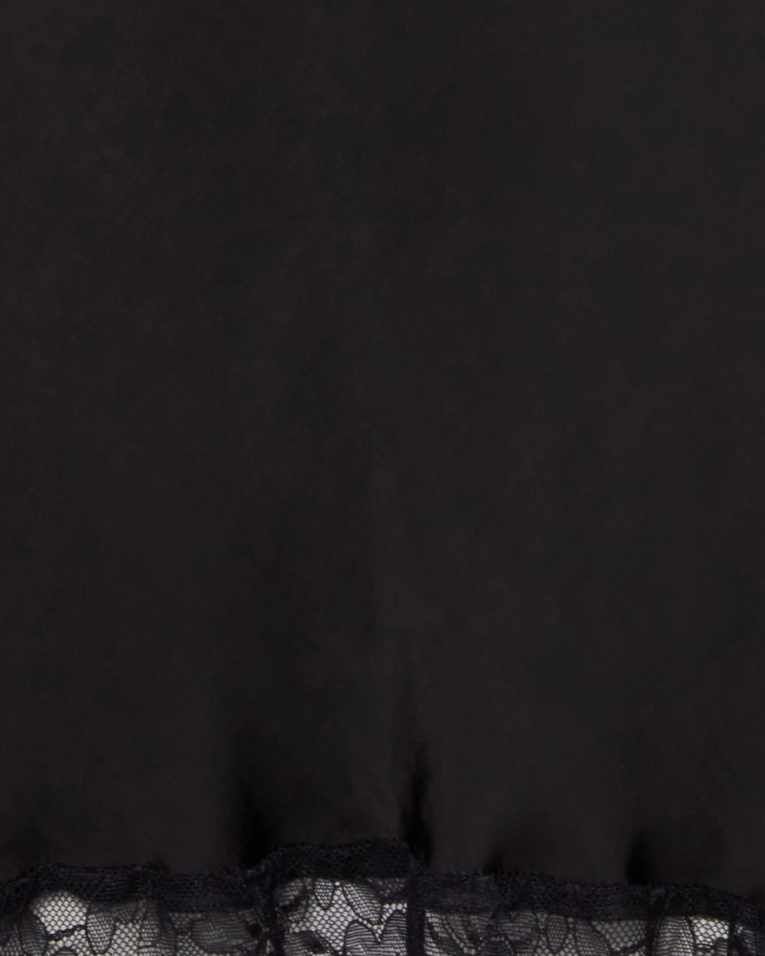 The VEERA dress is a mini length slip with lace trim at the hem and neckline.