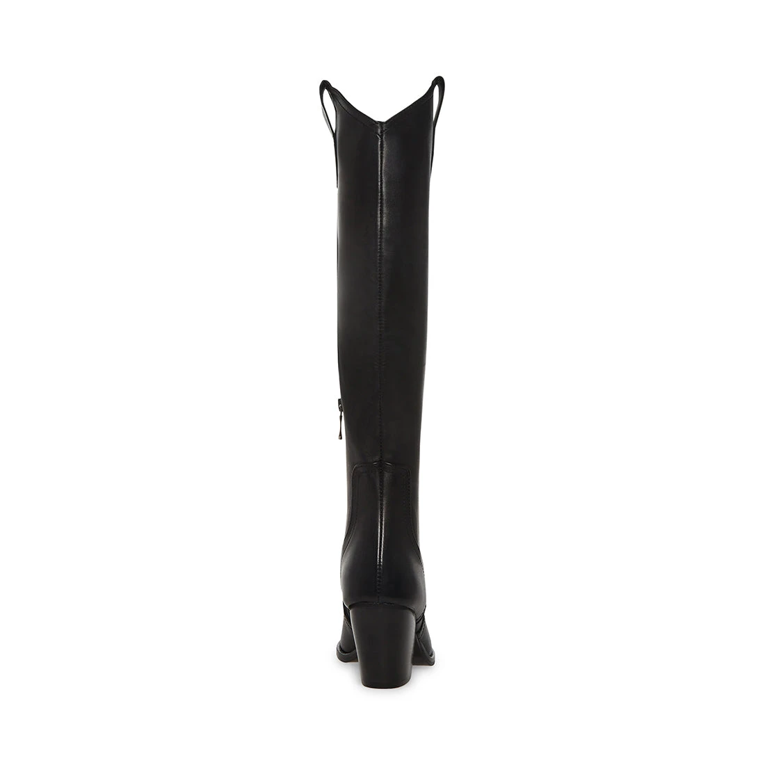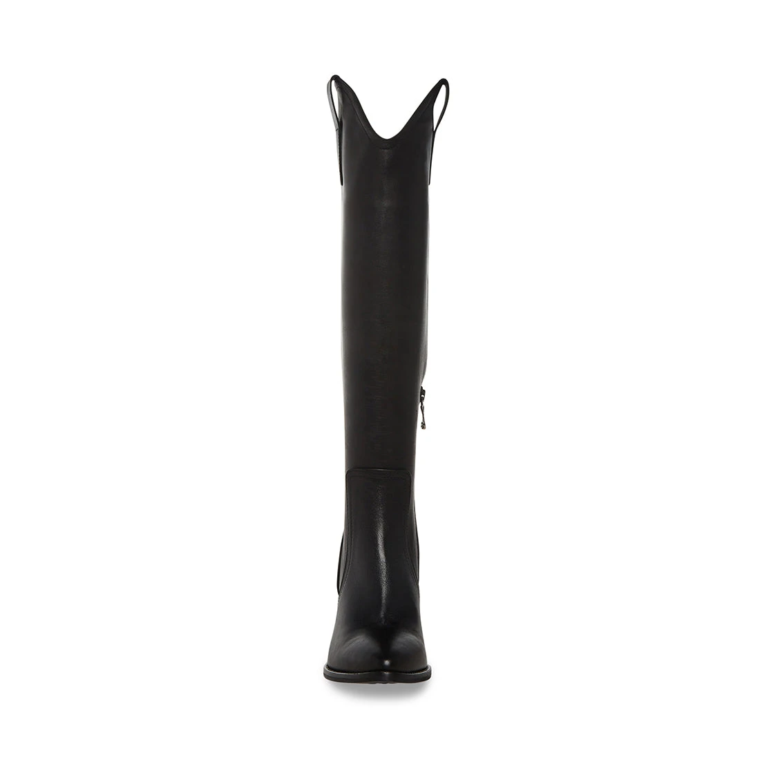 A stripped-down cowboy-inspired style, the VITTORIA boot features decorative panel cuts in a knee-height design finished with an angled block heel and a pointed toe.