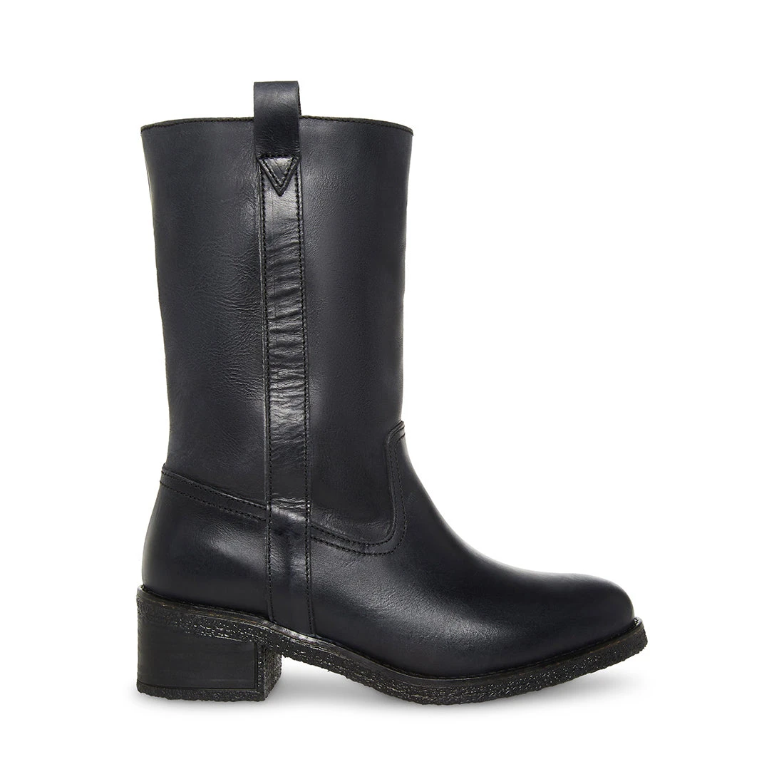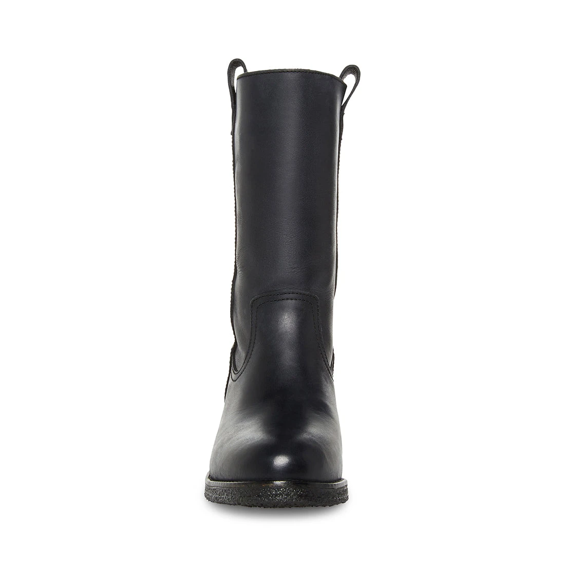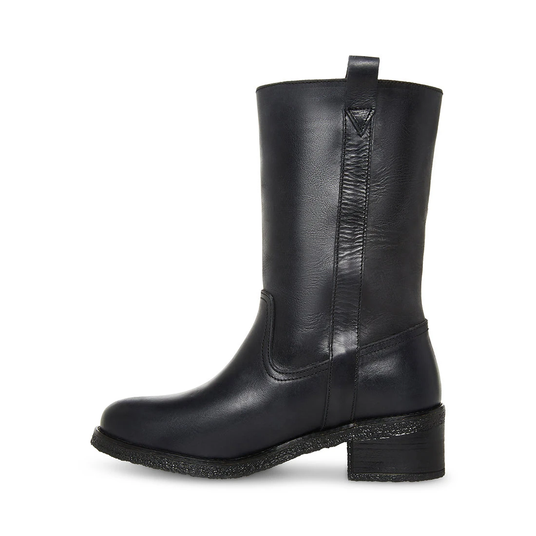The WINNY boots feature the classic engineer boot construction with a low block heel and a wide pull-on design that gives them a subtly slouched look.