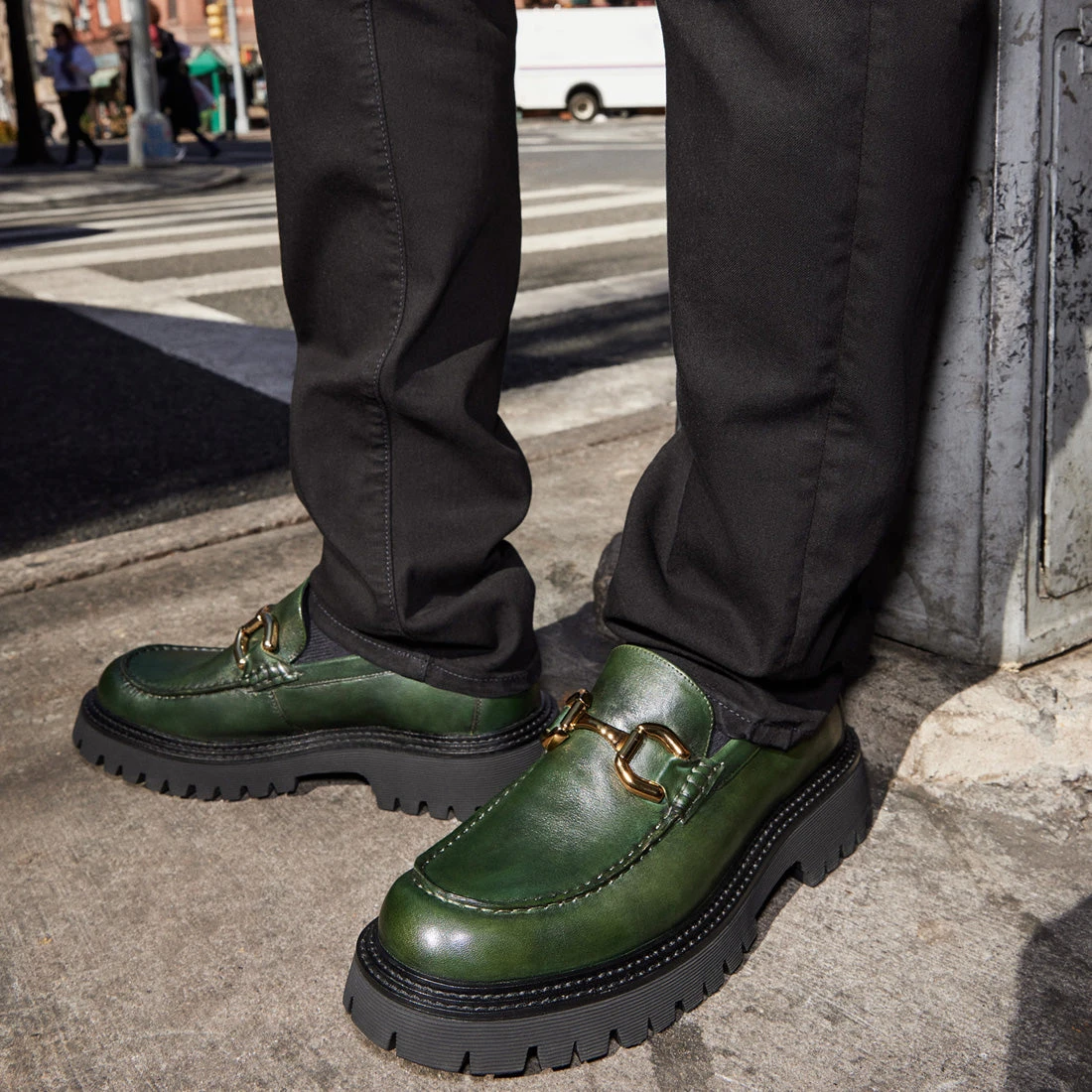 A chunky lug sole serves at the base for the ZYLO leather loafer and metal bit hardware across the top finishes the look.